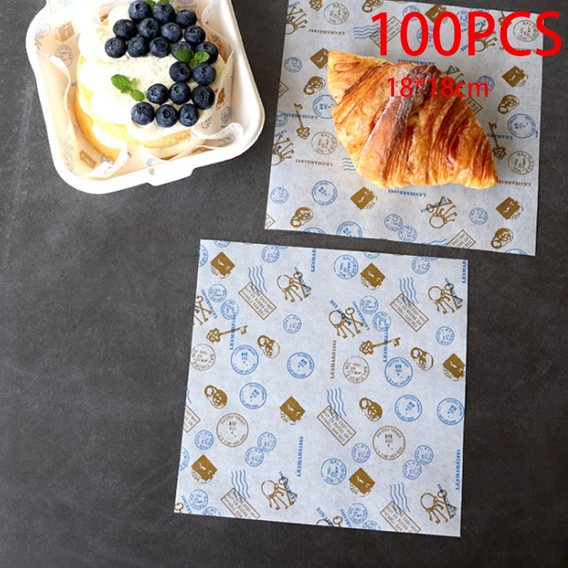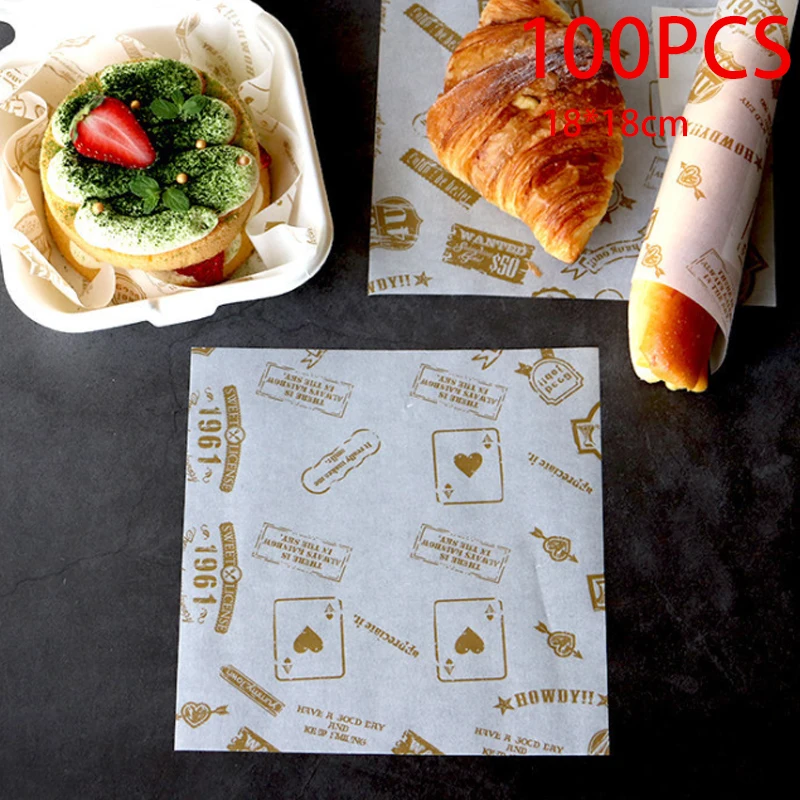 100 шт., масляная бумага для упаковки хлеба, сэндвичей, гамбургеров...
