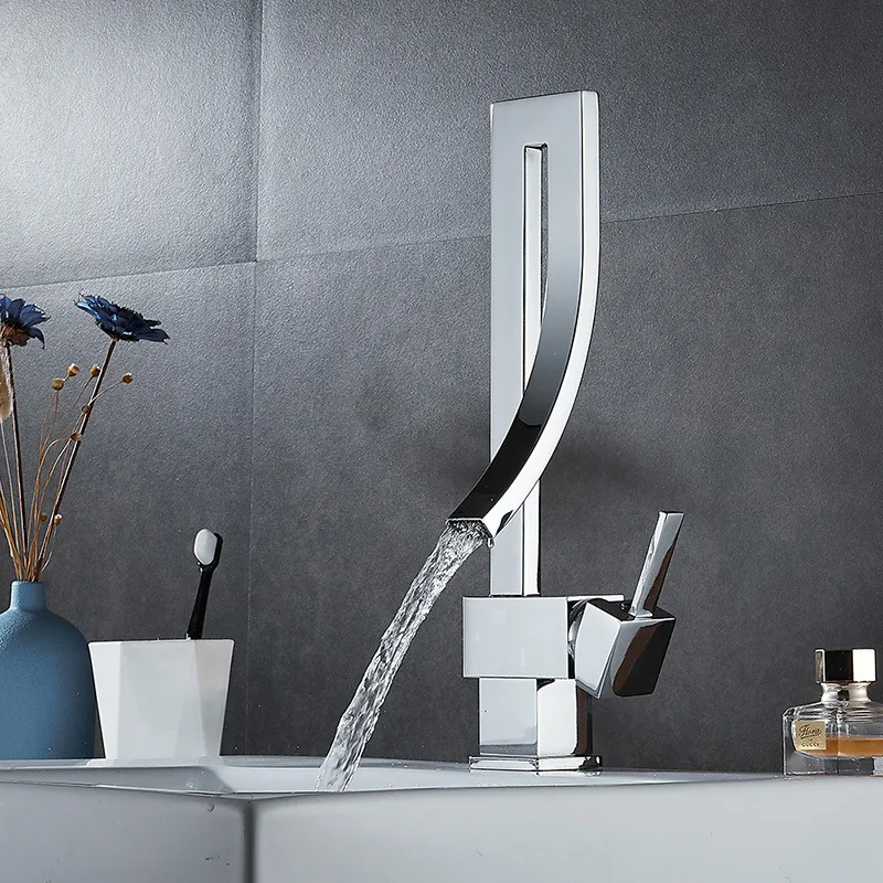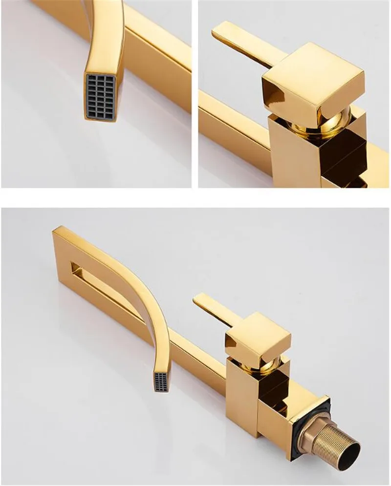 Хромированный смеситель для ванной комнаты, квадратный кран для раковины в ванную комнату, цвет розовое золото, настенное крепление на раковину
