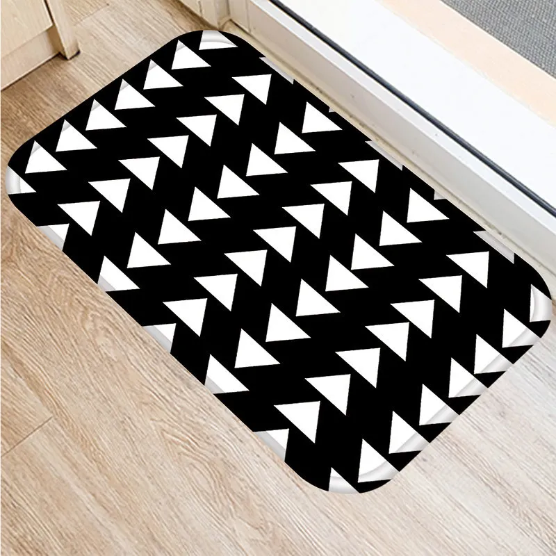Скандинавский черный коврик с геометрическим рисунком для кухни, ванной, входной двери, коралловый бархатный коврик, комнатный коврик, коврики для пола, Противоскользящий коврик, домашний декор