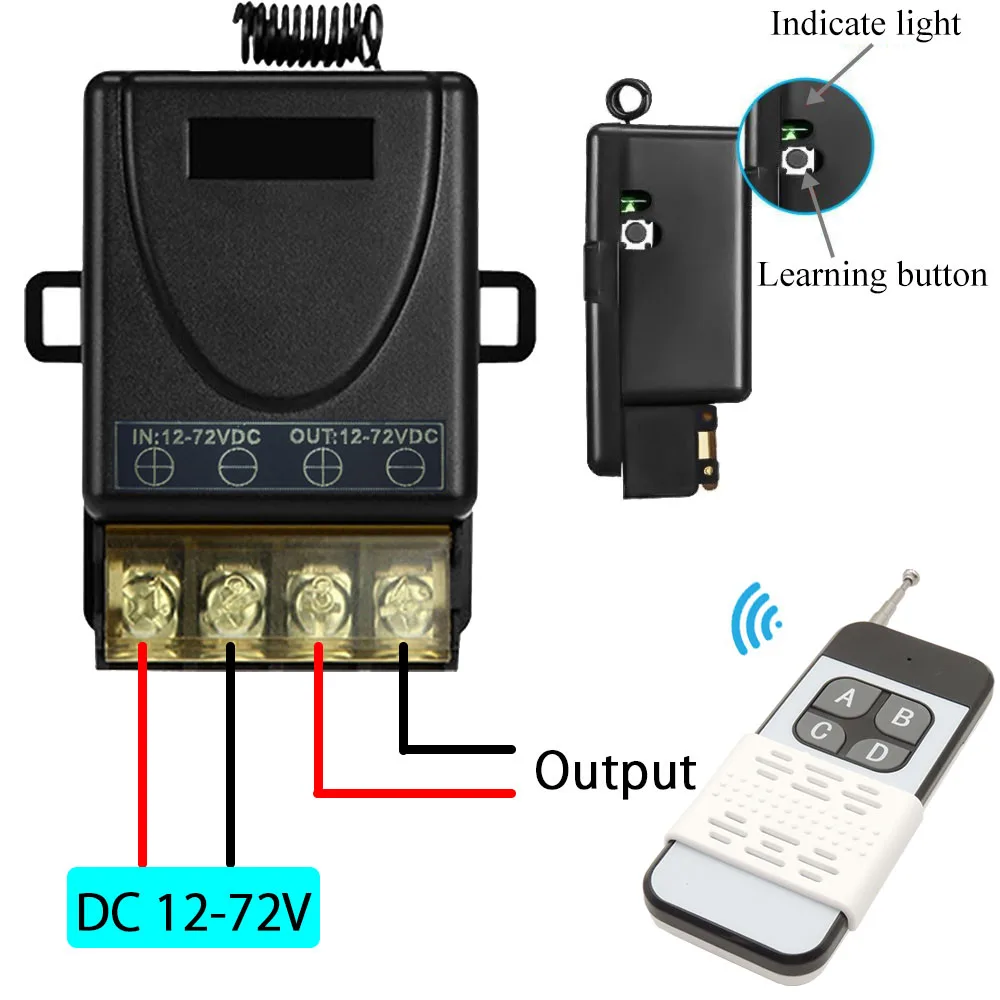 433 МГц высокомощный беспроводной пульт дистанционного управления переключатель постоянного тока 12 В 24 в 72 в 30 А 1000 м для завода фермы офиса вытяжной вентилятор насос потолочная лампа
