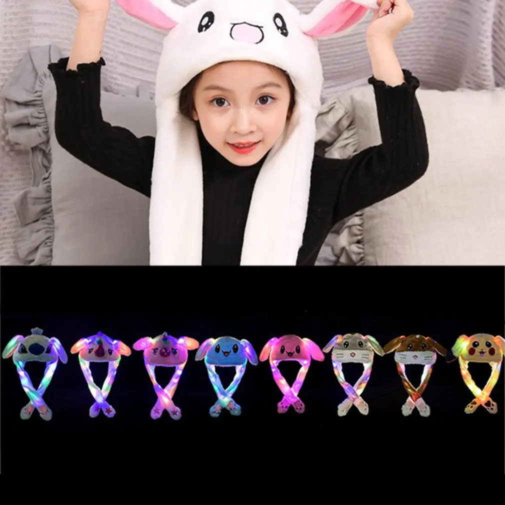 Милая плюшевая шапка со светодиодными светящимися кроличьими ушками, 1 шт., милая светящаяся плюшевая шапка с зажимом для рук для детей и взрослых, шапка с движущимися ушками и ушами, подарки