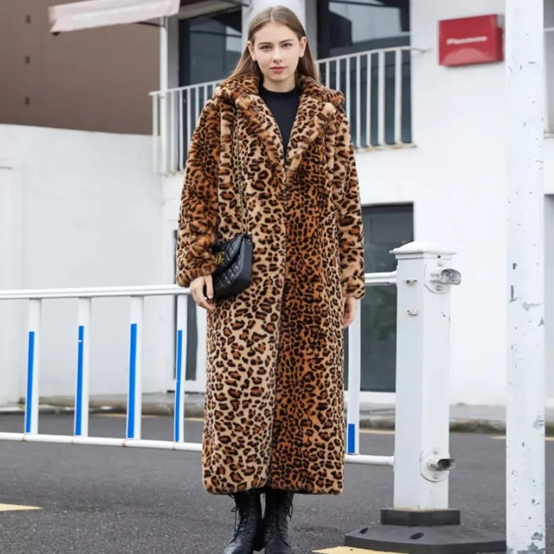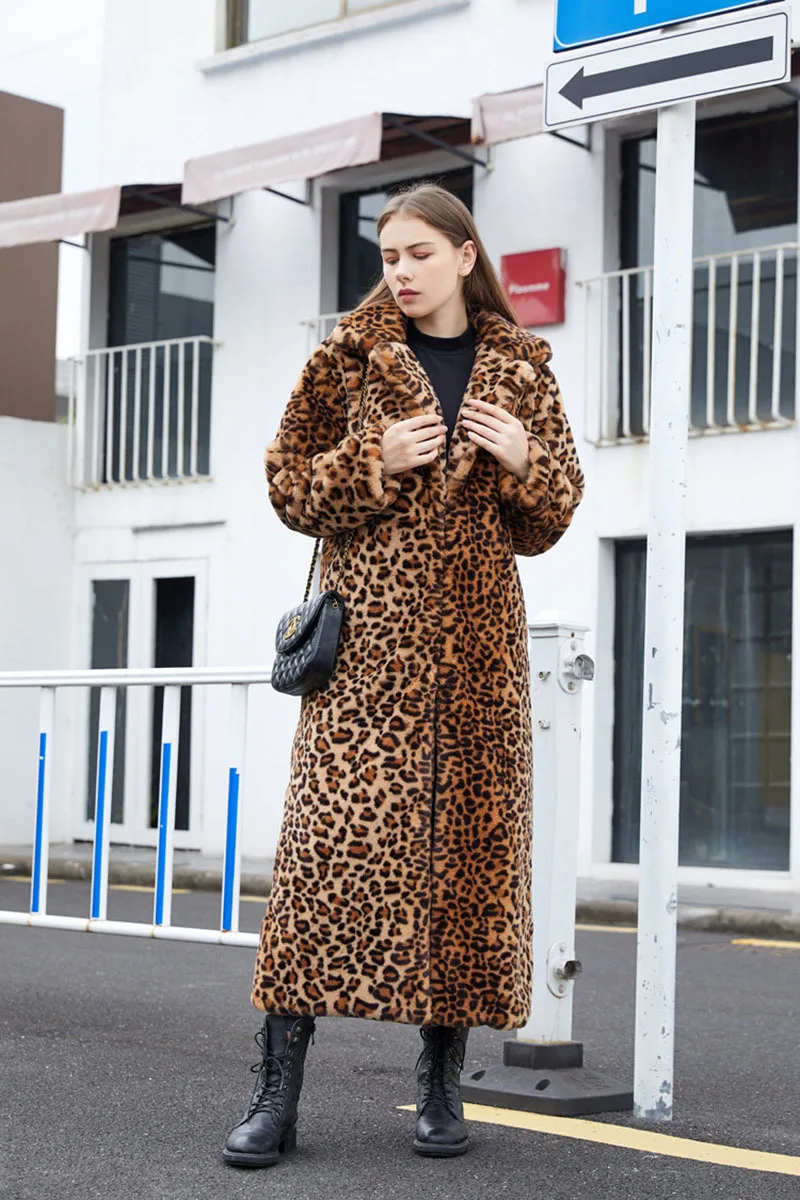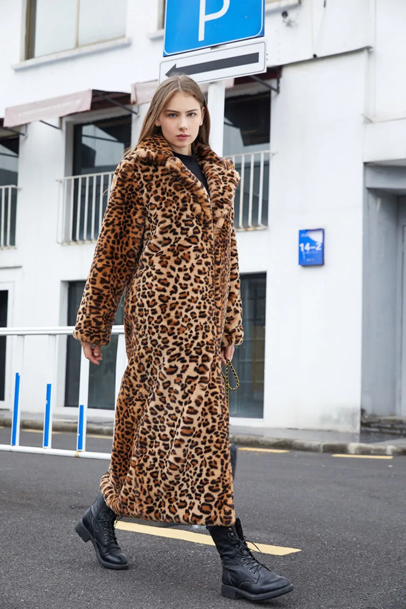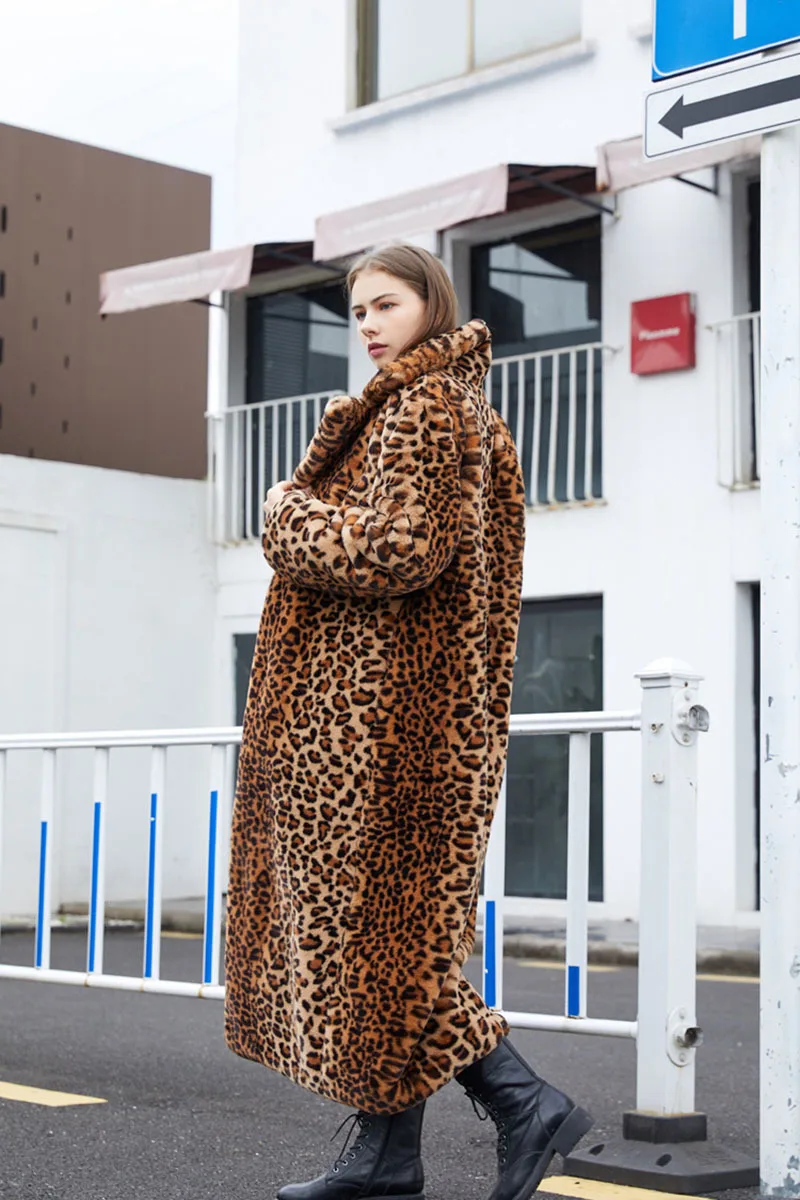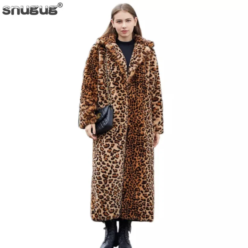 SNUGUG 2021 г., уличная длинная шуба из искусственного меха с леопардовым принтом, пушистая куртка для женщин, зимние плюшевые шубы и куртки из искусственного кроличьего меха