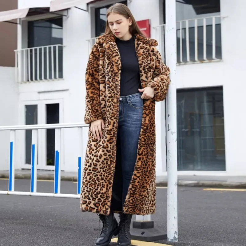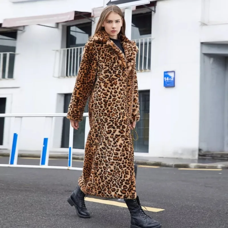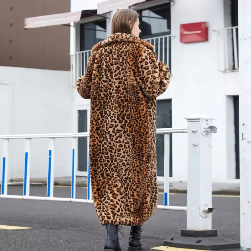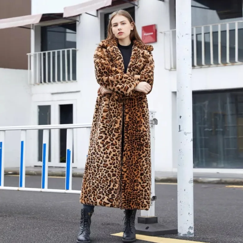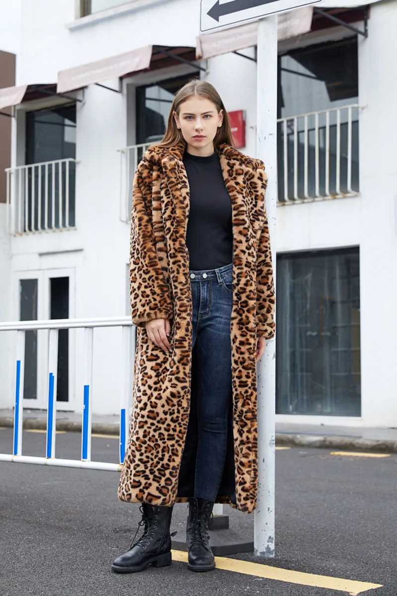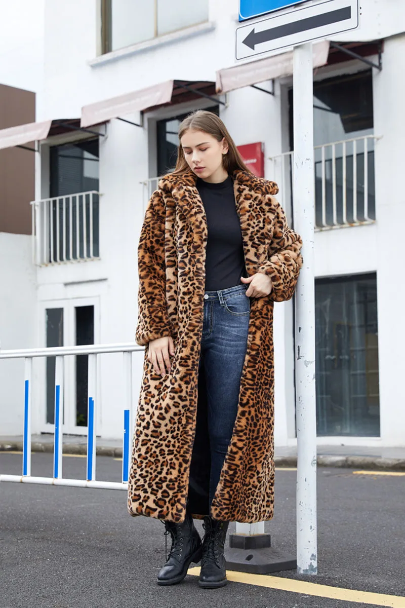 SNUGUG 2021 г., уличная длинная шуба из искусственного меха с леопардовым принтом, пушистая куртка для женщин, зимние плюшевые шубы и куртки из искусственного кроличьего меха