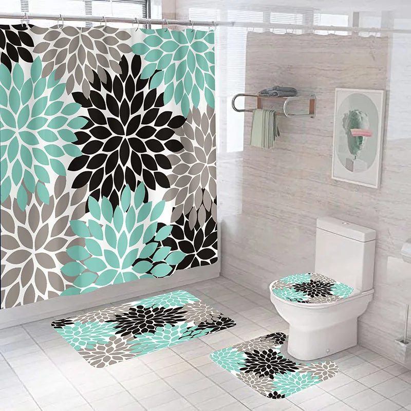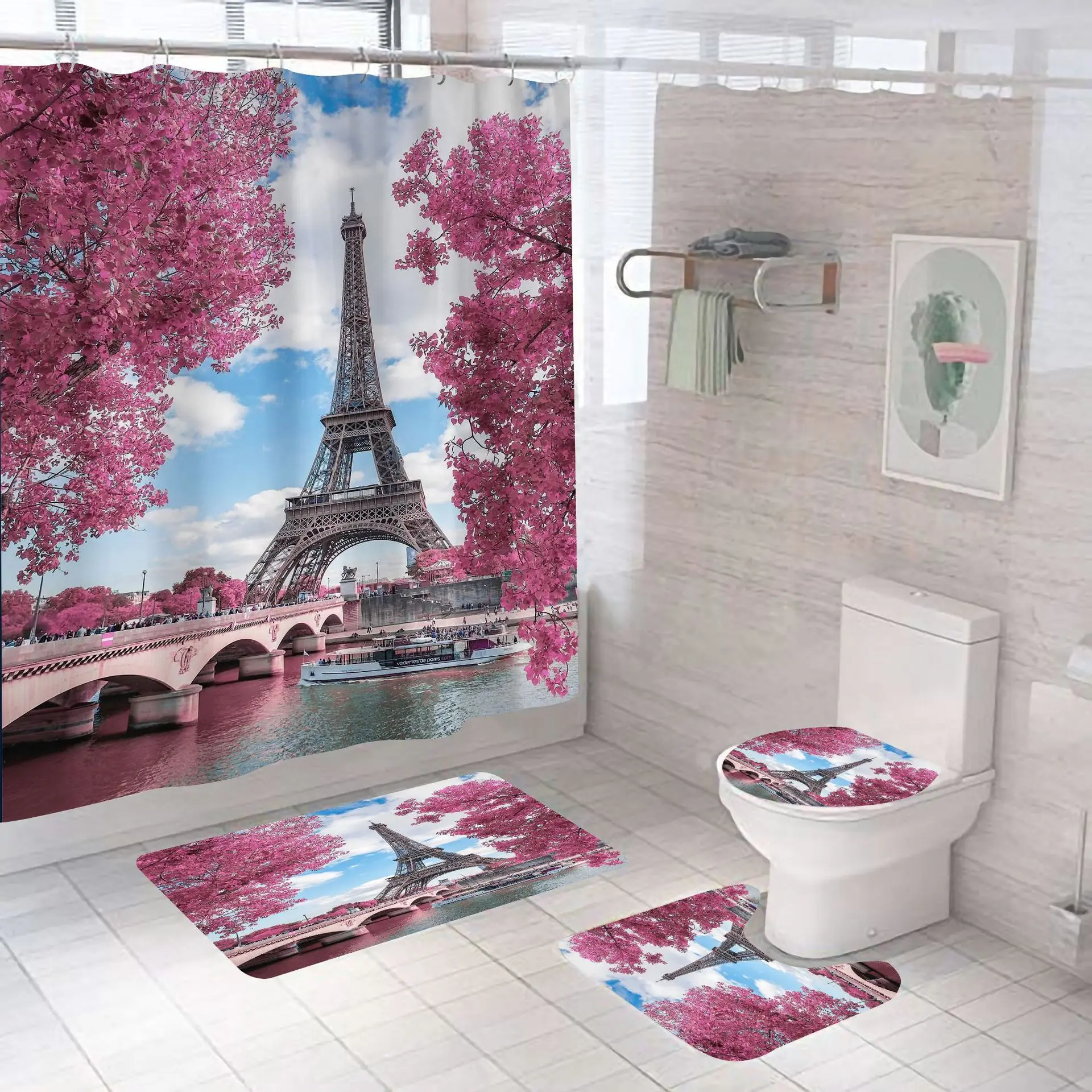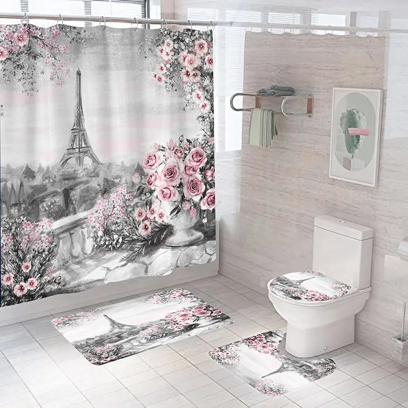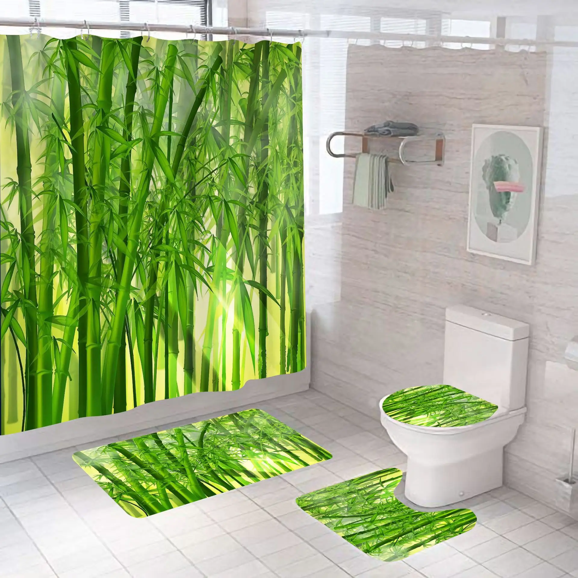 Набор водонепроницаемых занавесок для ванной комнаты, нескользящий коврик для ванной, коврик, сиденье для унитаза, моющийся аксессуар