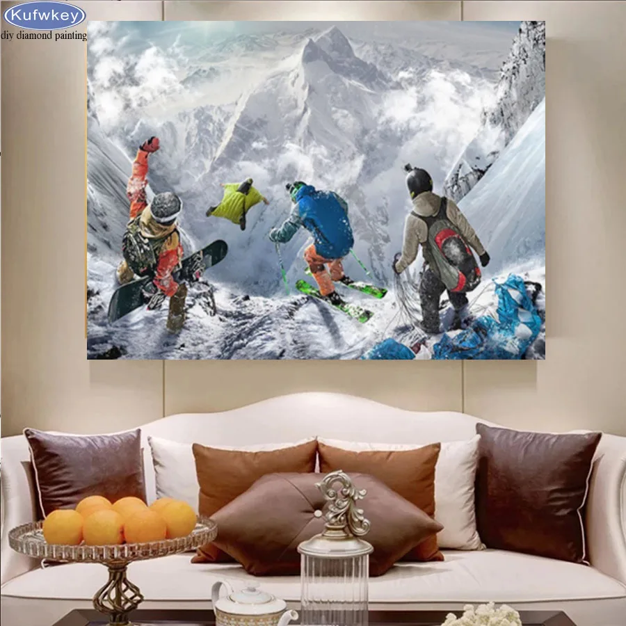 Алмазная 5D картина сделай сам для сноуборда, снега, гор, крыльев, вышивка, мозаика, катания на лыжах, Спортивная картина Стразы, рождественский подарок
