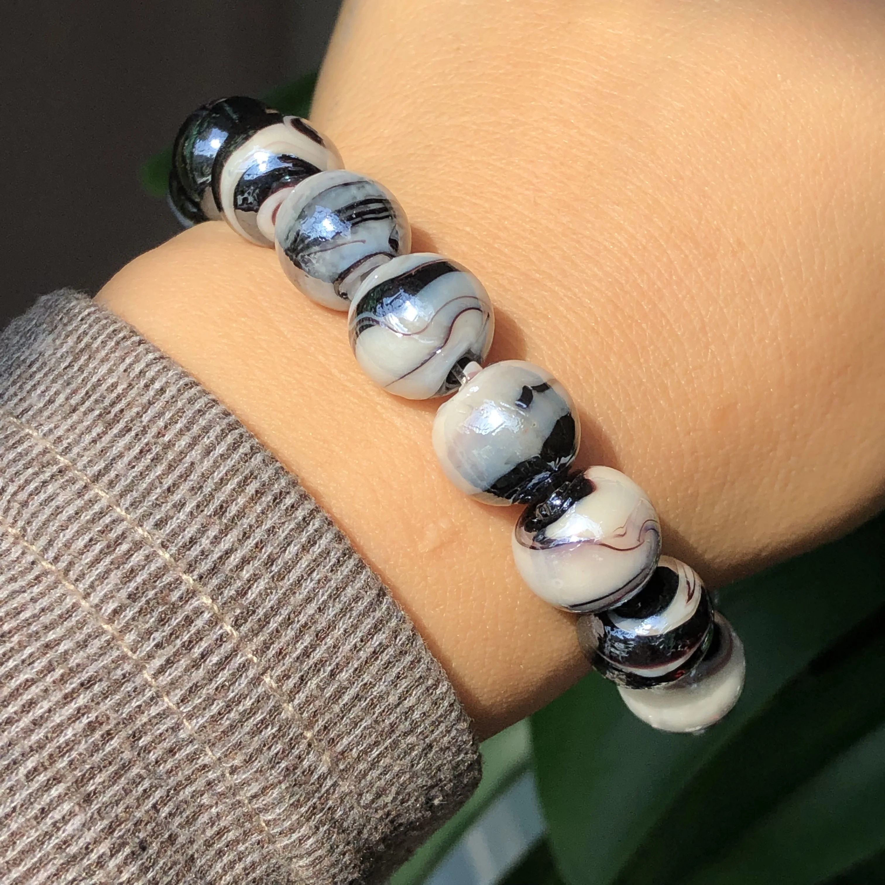 Название камня: черныйХрустальное стекло с белыми яркими полосками