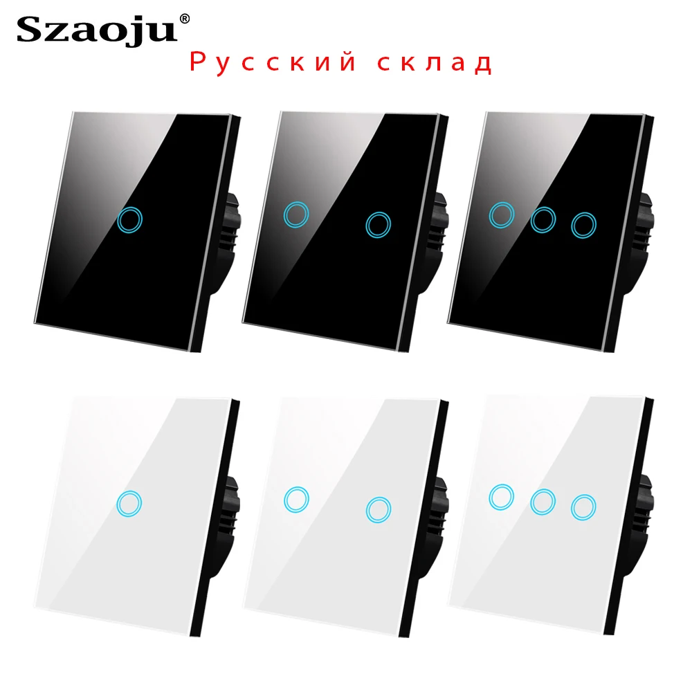Сенсорный выключатель Szaoju европейского стандарта, настенный Смарт светильник ель с панелью из закаленного хрустального стекла, 124 клавиши, переменный ток 23-240 В, выключатель питания