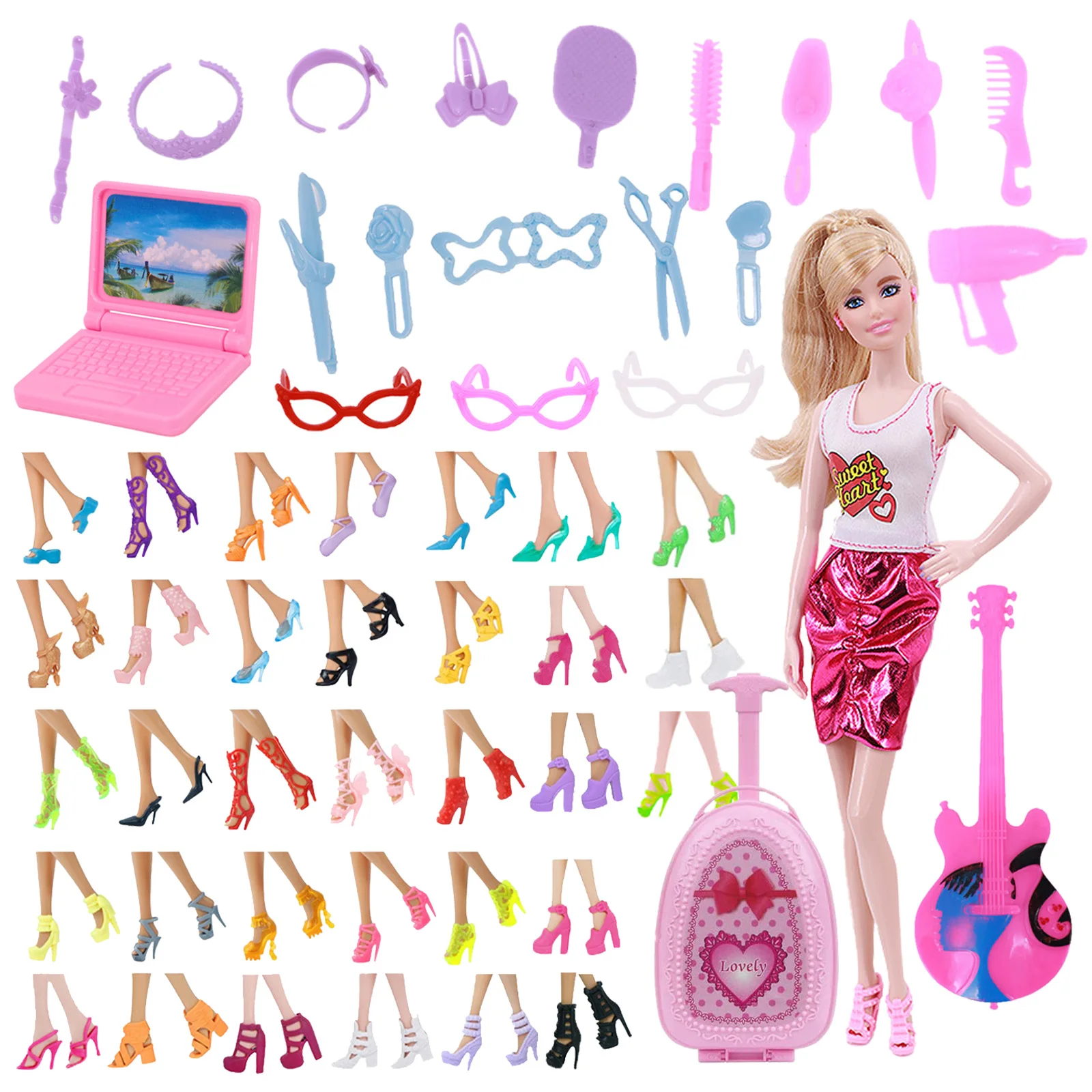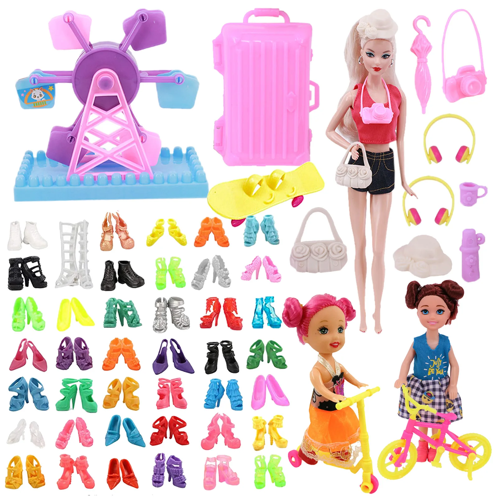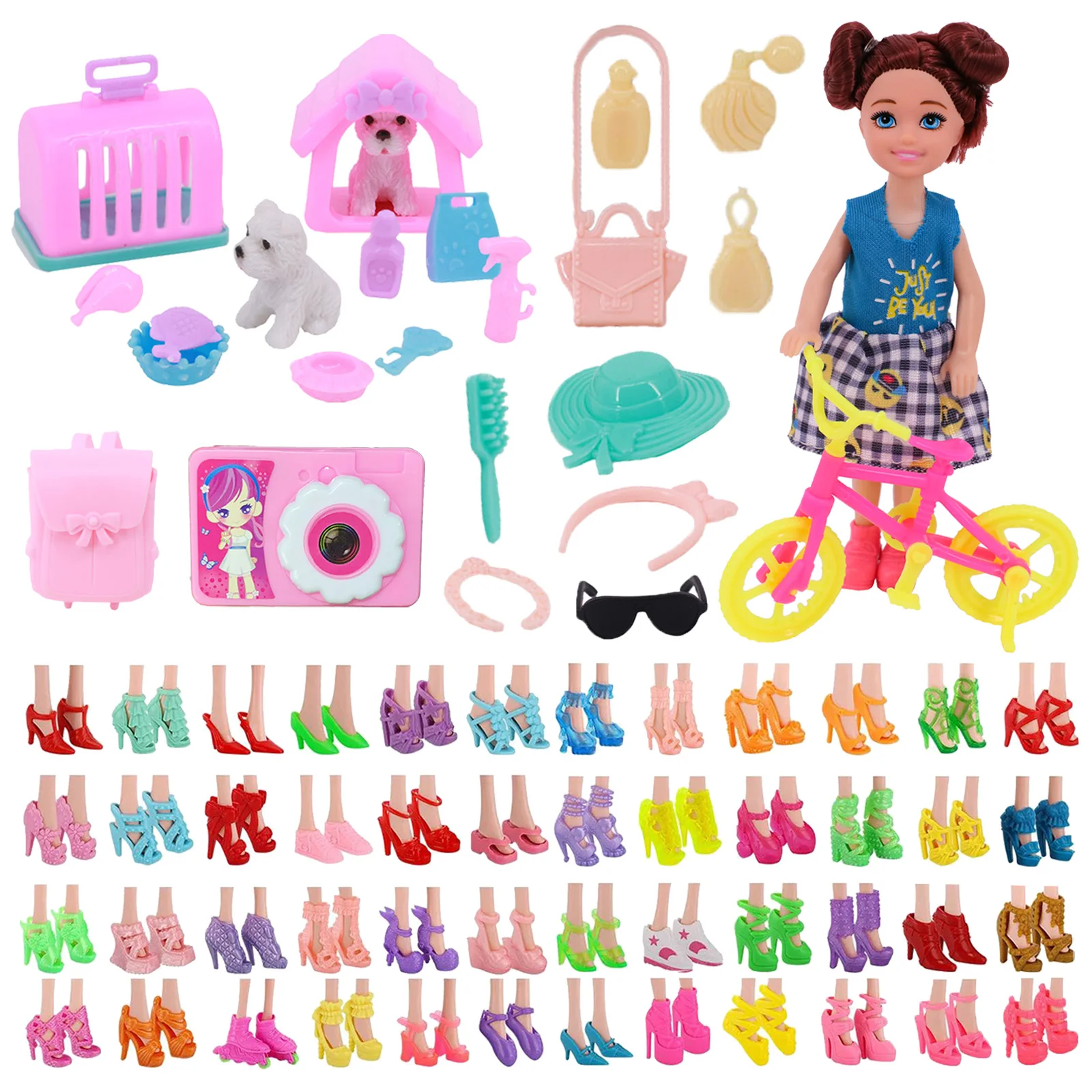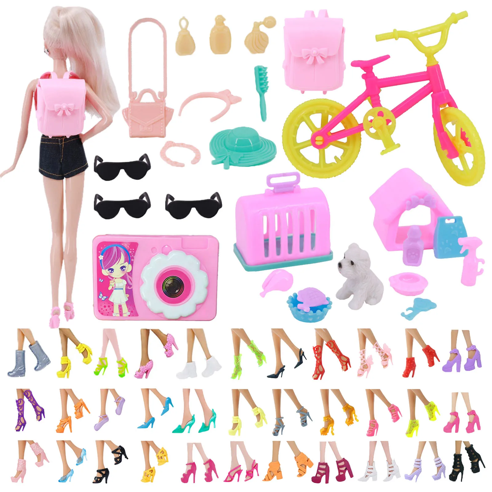 Рюкзак для очков, 43 шт.компл. для девочек, аксессуары для игрушек, сапоги, рюкзак для очков, различных аксессуаров, подходит для кукол 11 дюймов