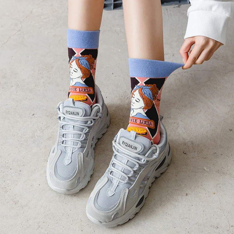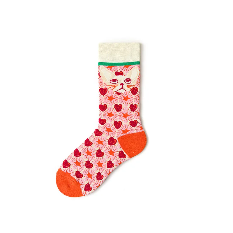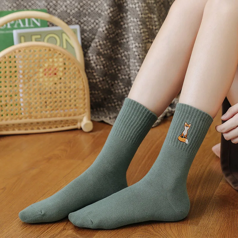 Милые дышащие хлопковые носки средней длины с вышивкой лисы; Одното...