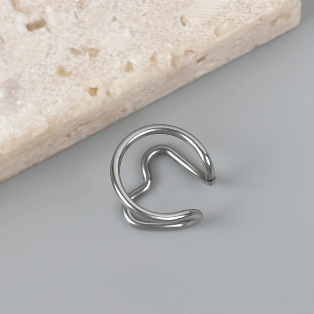 Металлические яркие серебряные серьги-каффы в форме сердца, двухслойные клипсы для ушей, простые серьги-гвоздики для женщин, манжеты, клипсы, серьги, ювелирные изделия