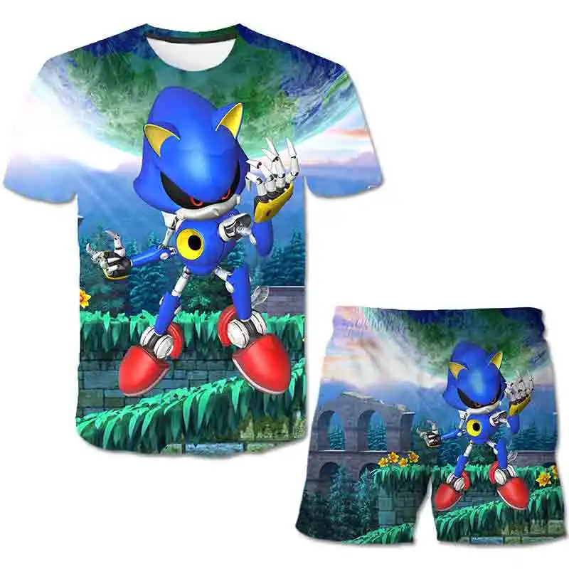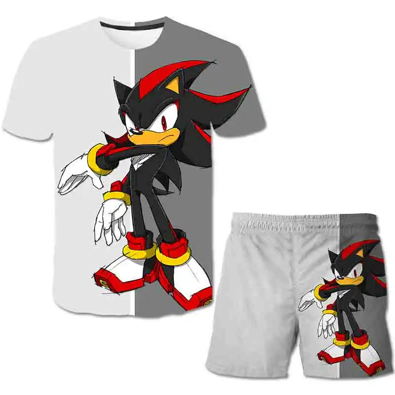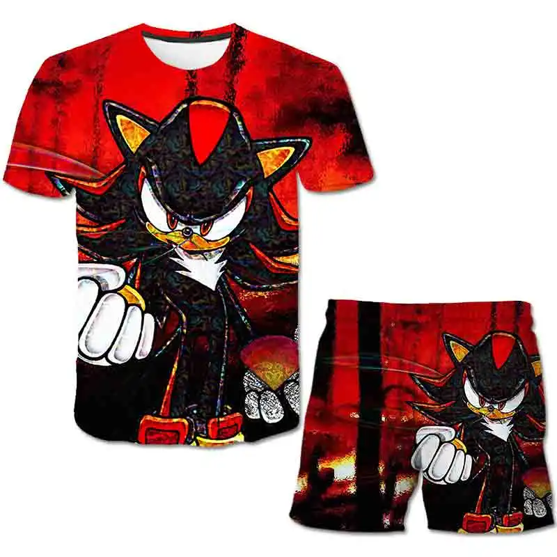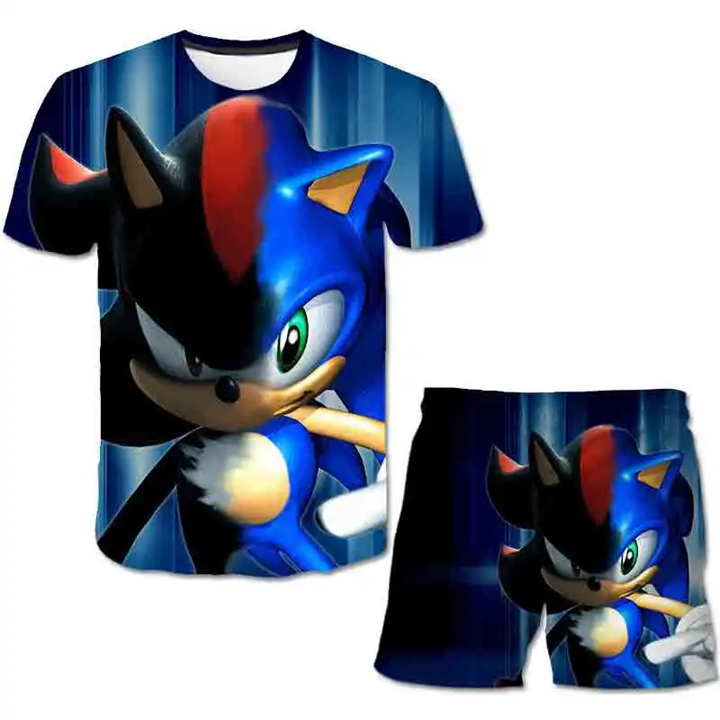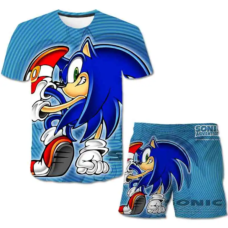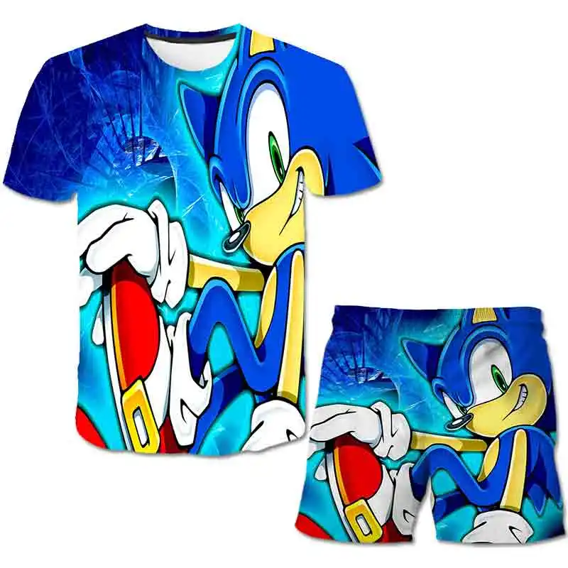 Детская футболка 3D, Комплект футболок Sonic, летний детский спортивный костюм для мальчиков с мультяшным рисунком, детский комплект одежды