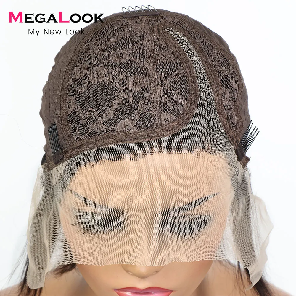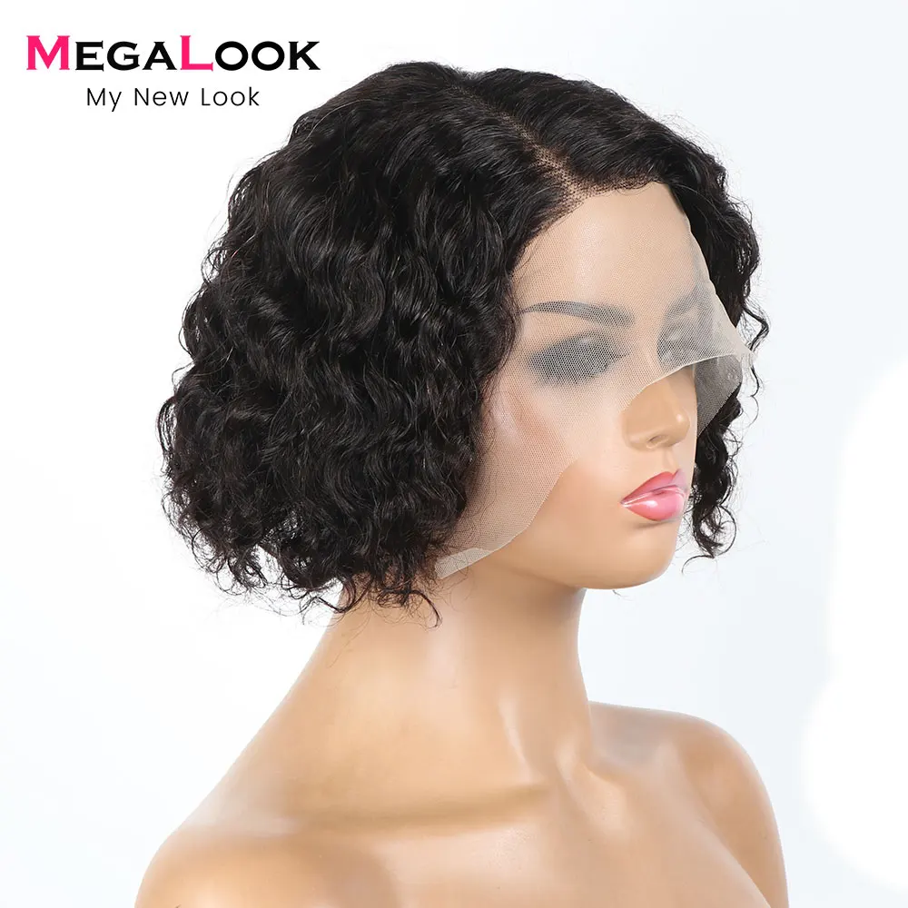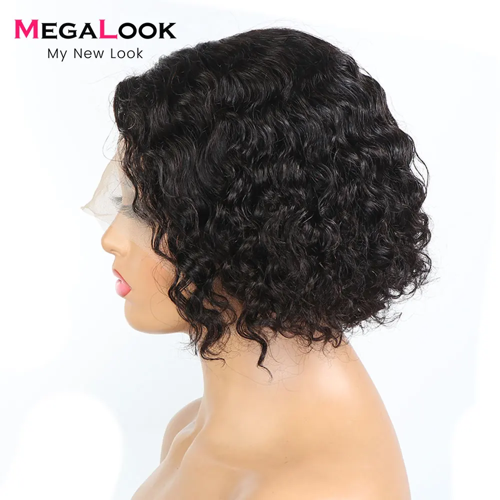 Megalook кудрявые человеческие волосы парики для женщин короткие вы...