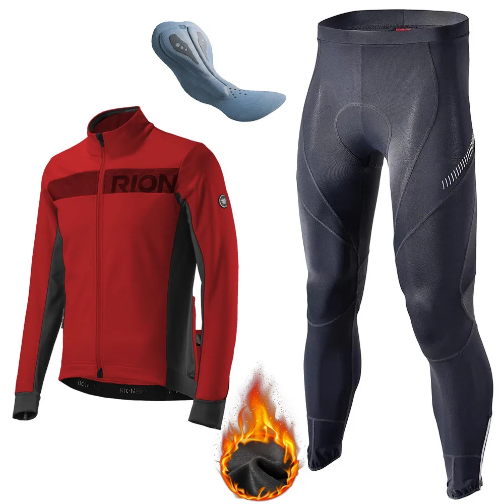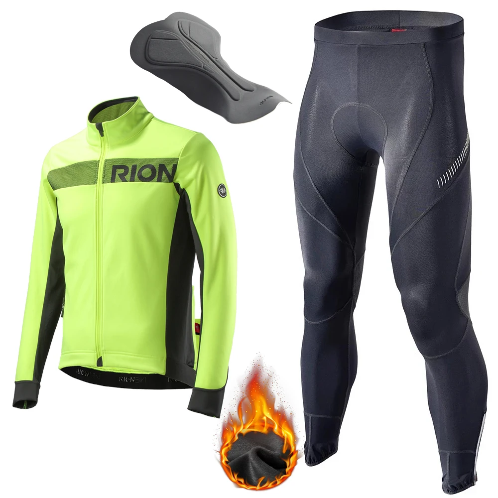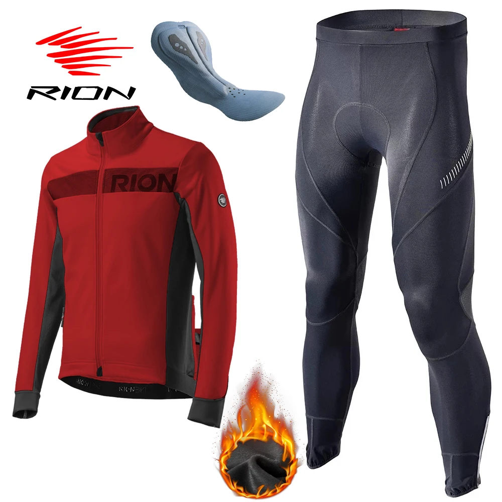 Мужской велосипедный комплект RION, зимняя куртка, штаны, ветрозащитная велосипедная одежда, Термальный MTB, теплые гелевые подкладки, мужской велосипедный костюм