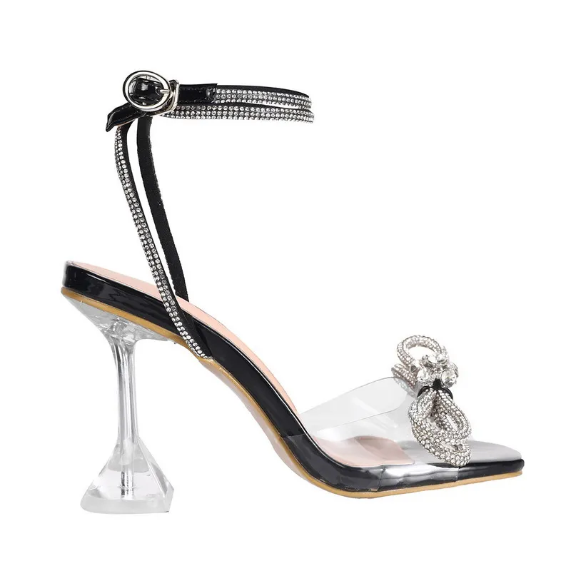 Сандалии женские на высоком каблуке 9 см, босоножки с блестящими бантиками и стразами, вечерние, радужные тапочки, модная Уличная обувь