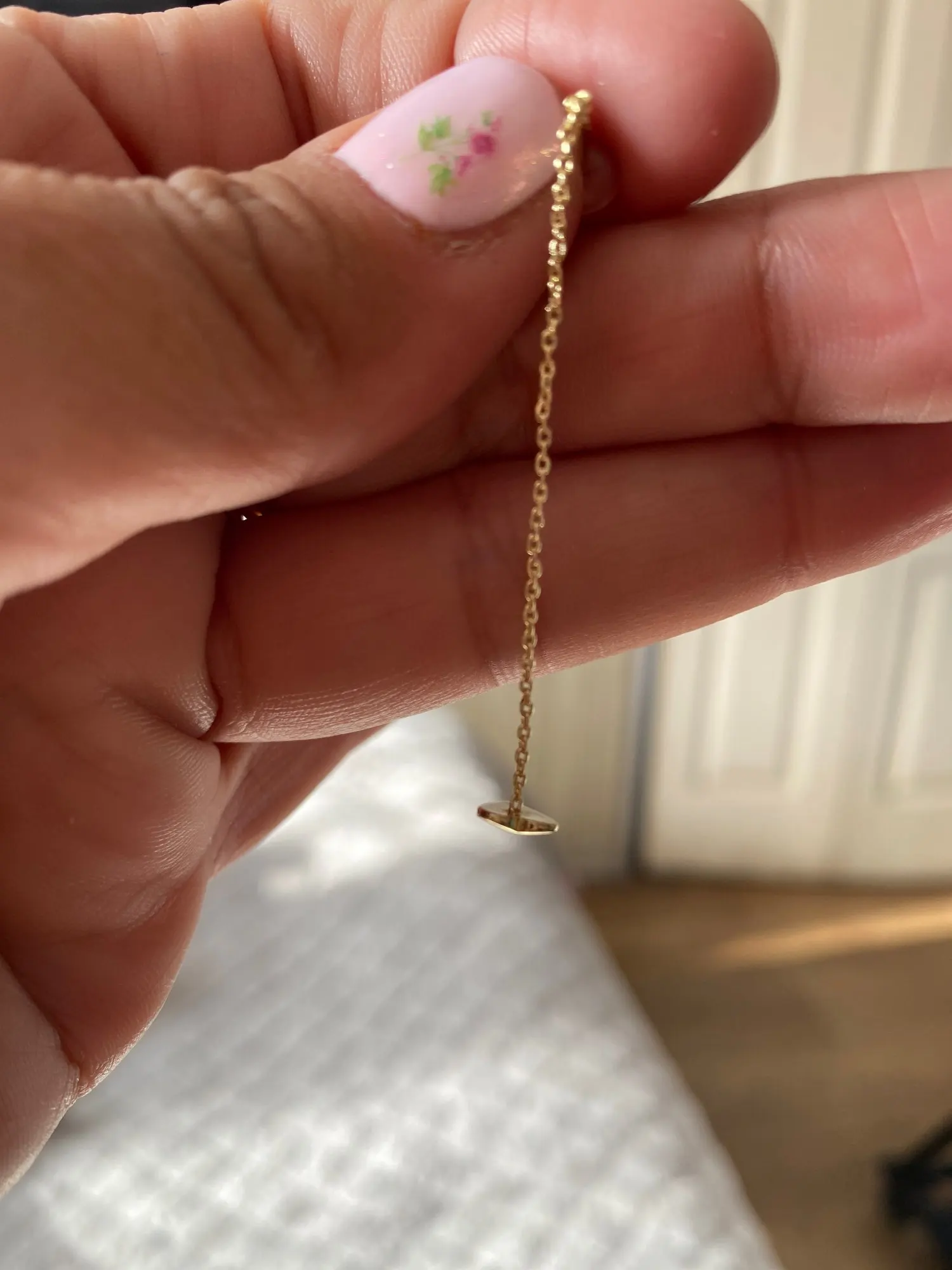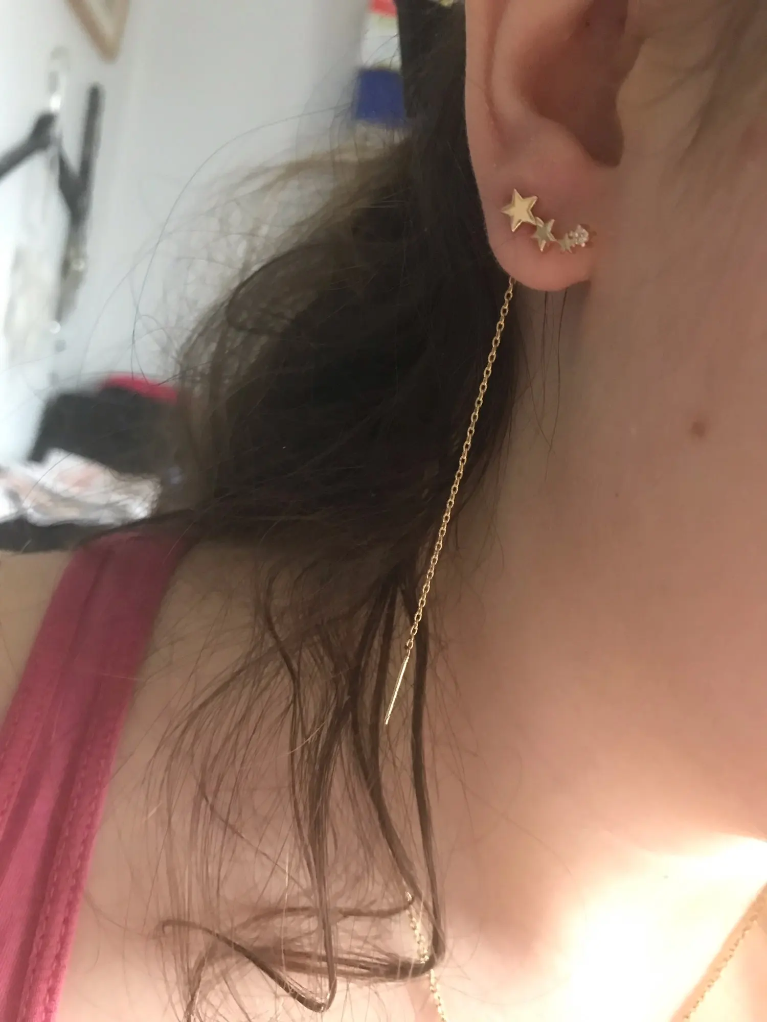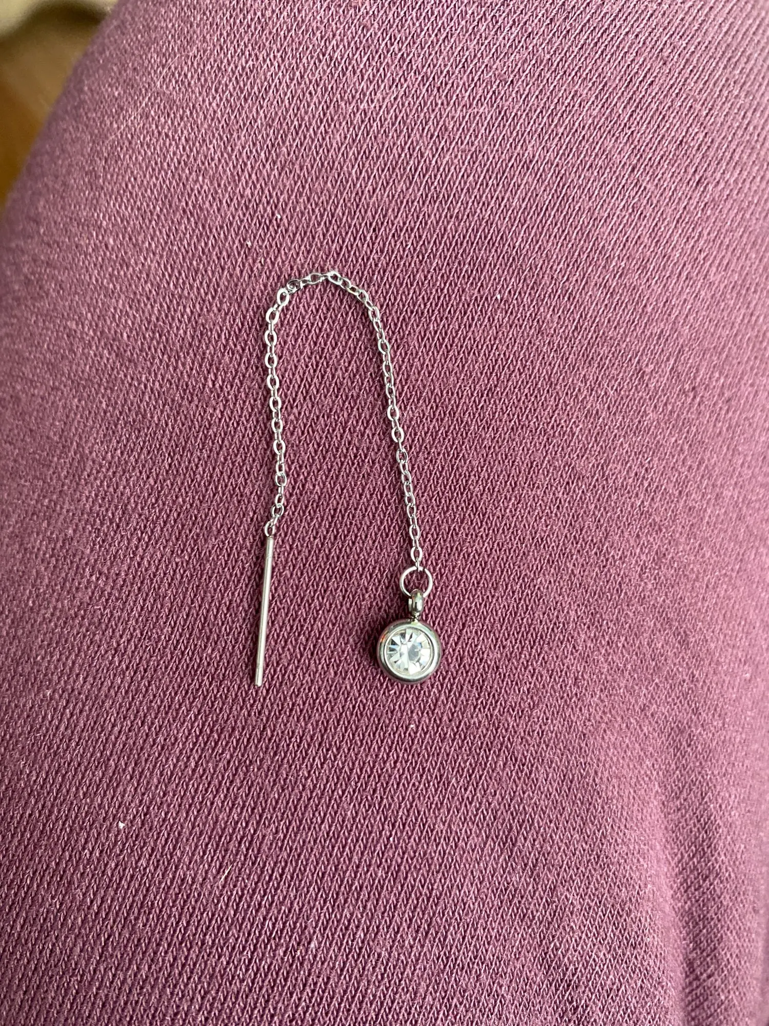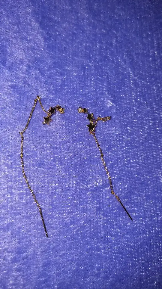 Серьги доставляются очень быстро. Они очень маленькие, но выглядят так, как ожидалось. Пожалуйста, обратите внимание, что цепочка предназначена для того, чтобы пройти через ухо. Цепочка не проникала через мой пирсинг, поэтому я в итоге их сдал. Если ваш пирсинг маленький, серьги могут не подойти.