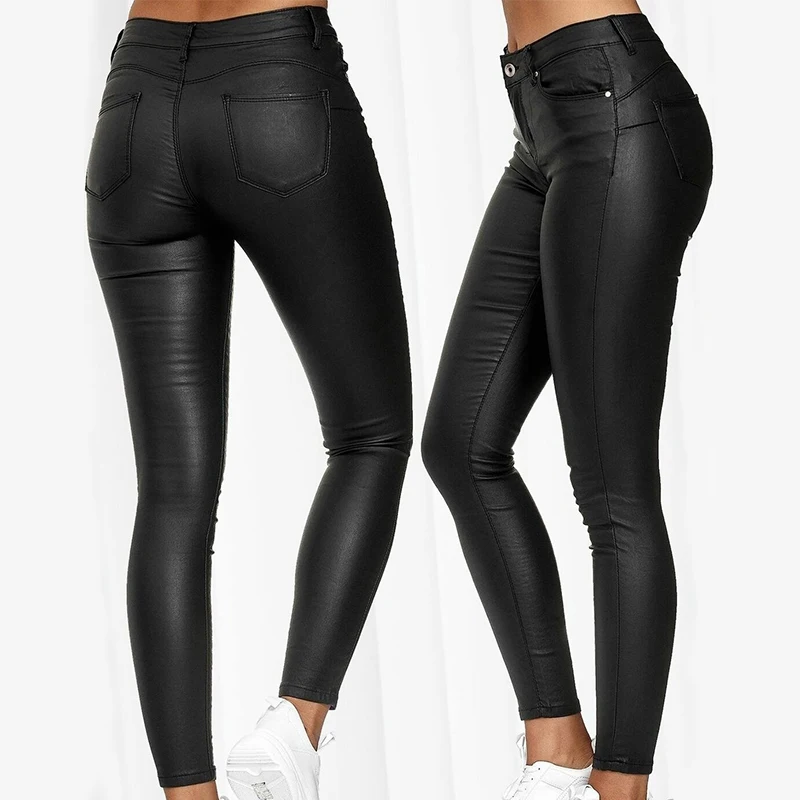 Женские леггинсы-карандаш из ПУ кожи, однотонные