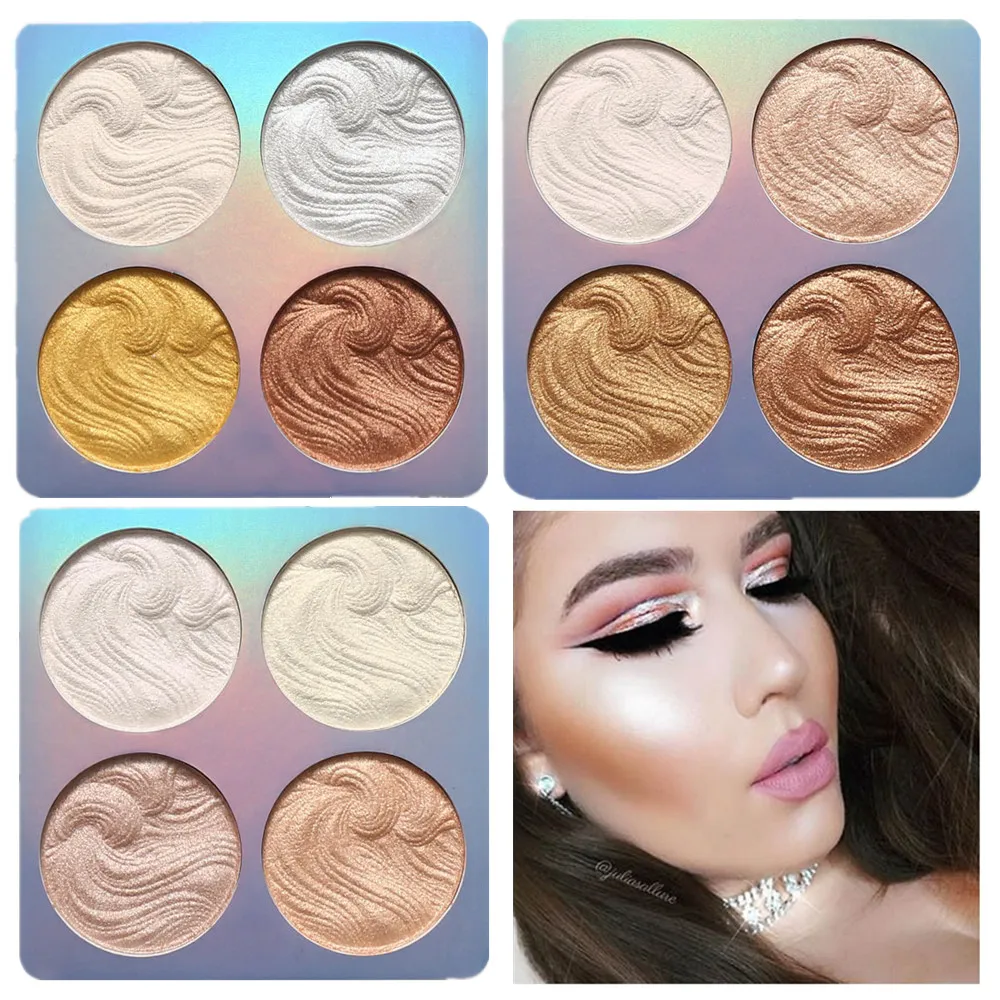 4 вида цветов Face хайлайтер, палитра, бронзер, Контурирование, хайлайтер, пудра, макияж блеск для лица, блестящий хайлайтер, макияж