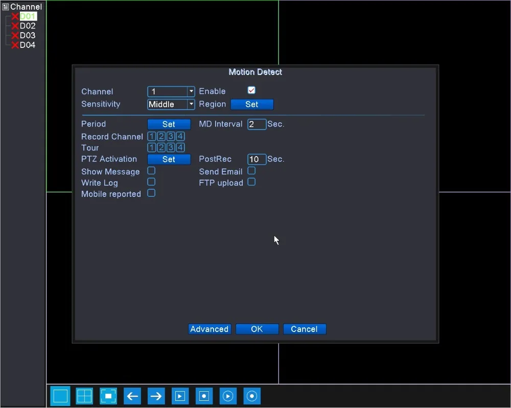 Руководство> Сигнализация> Обнаружение видео> непрерывное
