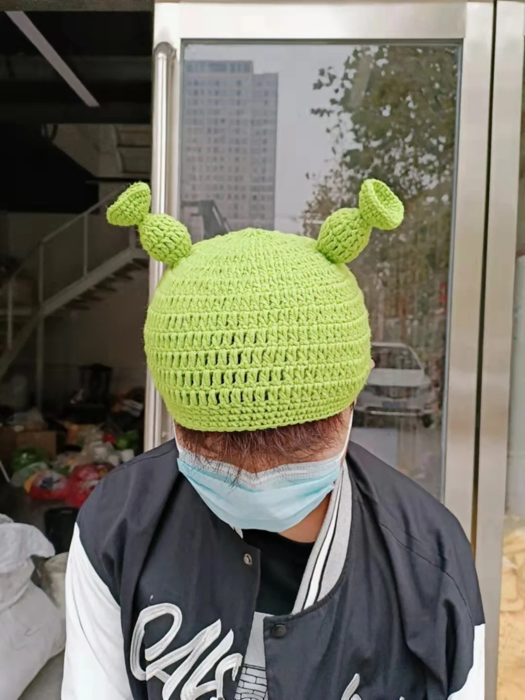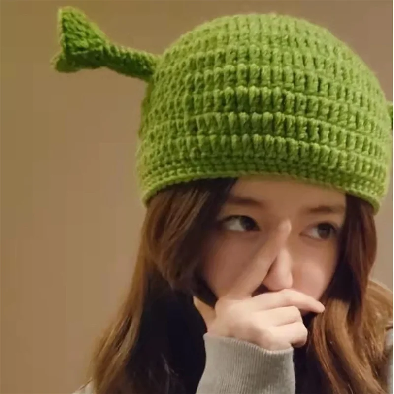 Зеленая Балаклава с ушками, шапка с изображением монстра Шрека, вязаная женская Зимняя шерстяная теплая шапочка ручной работы, шапочки для вечерние