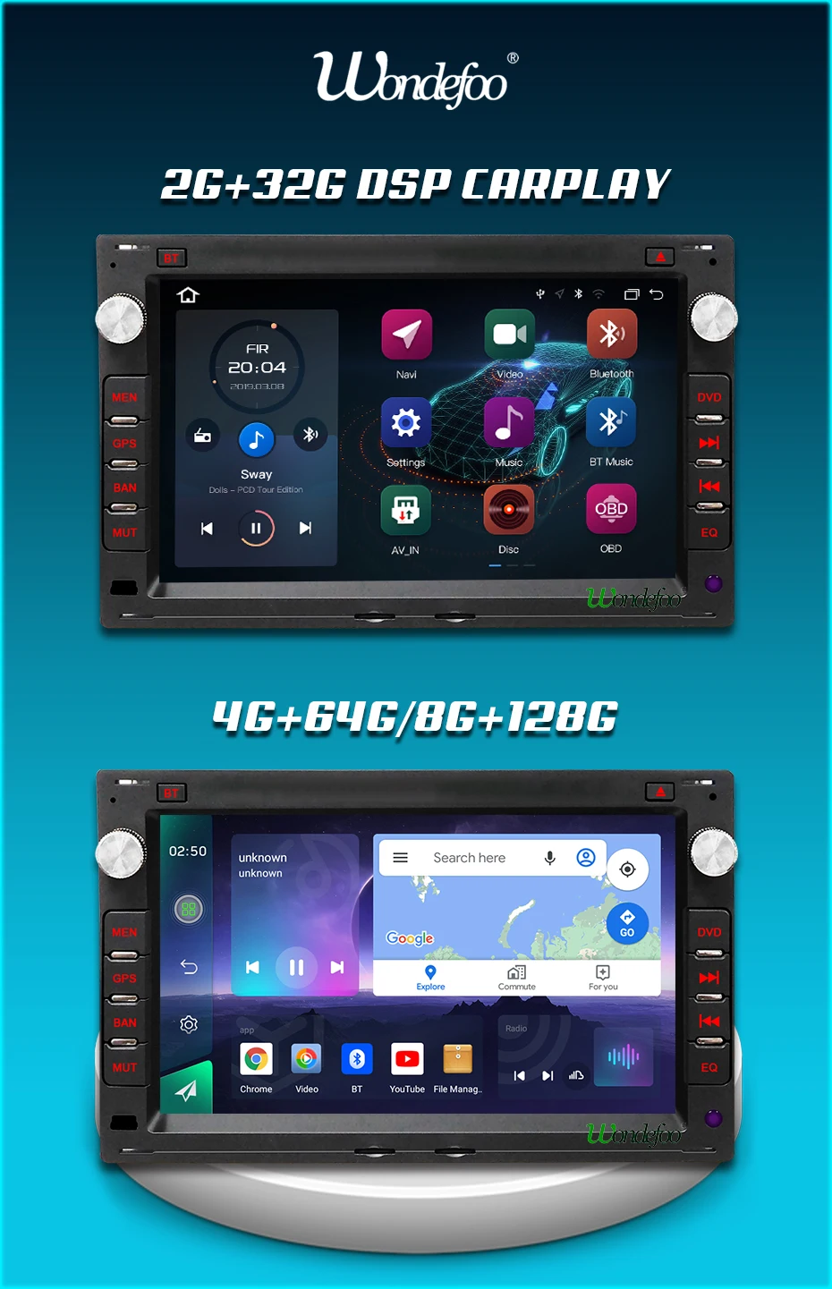 DSP (только 4G + 64G /8G + 128G имеет 32EQ) DSP = Система цифрового усилителя. Он делает звук лучше, чем раньше, и делает радиосигнал лучше, чем раньше. Только менее высокая версия автомобиля имеет заводскую систему DSP на рынке. Если вы покупаете этот чип. В будущем у вашего автомобиля будет DSP система.