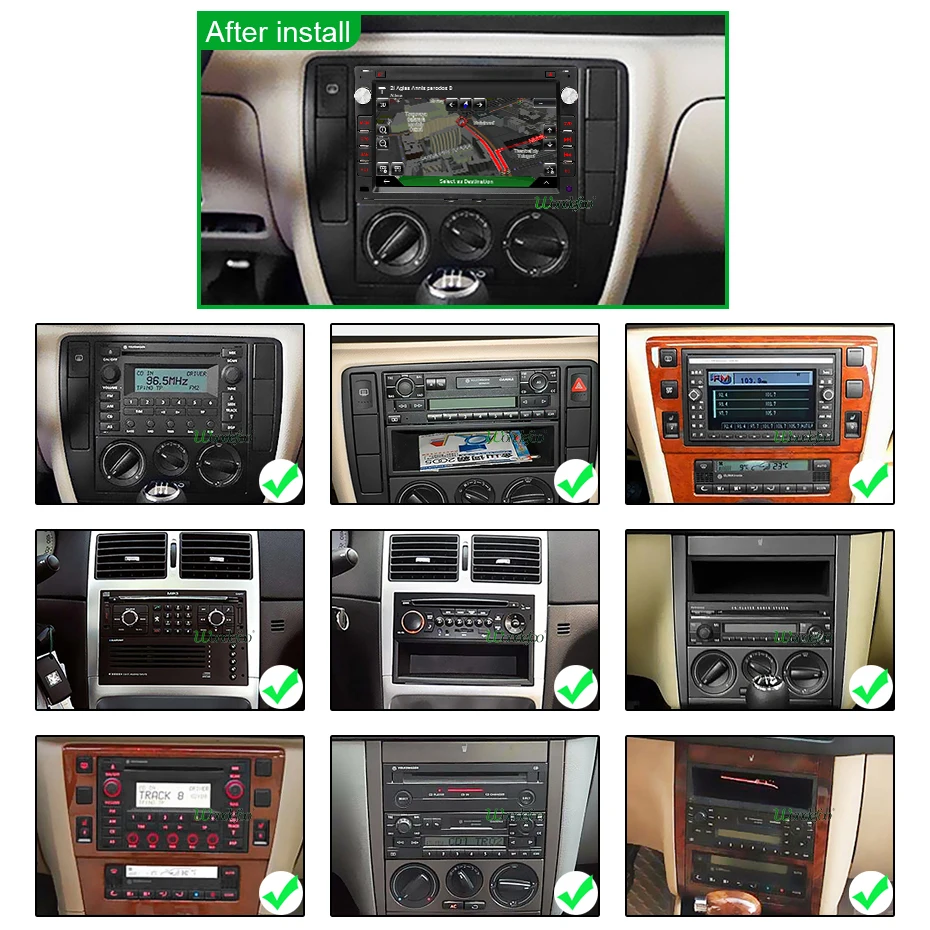 Тик означает, что он может установить наше радио. Крест означает, что он не может быть установлен, размер радио отличается от нашего продукта. Если вы все еще не уверены, пожалуйста, оставьте сообщение нашей службе поддержки клиентов. Мы поможем вам.