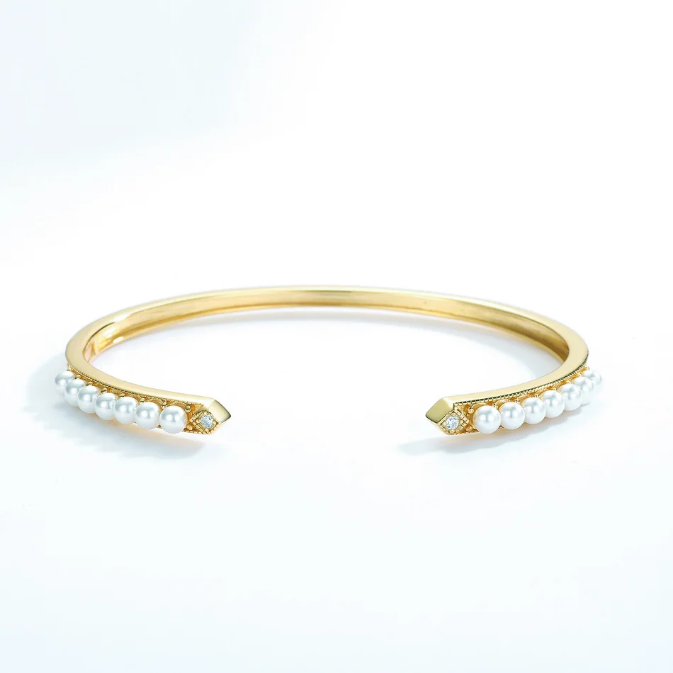 ALLNOEL женский браслет из стерлингового серебра 925 пробы покрытый настоящим золотом ювелирные изделия из жемчуга открытый дизайн регулируемый высокое качество Новинка