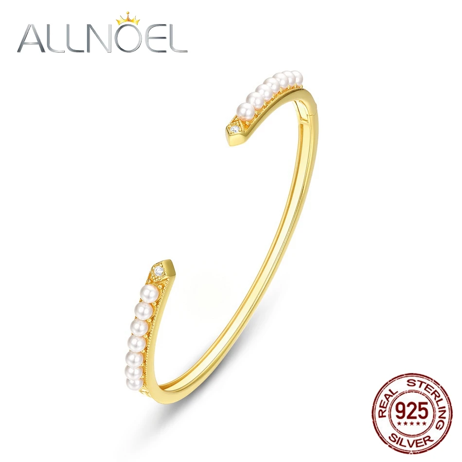 Женский браслет ALLNOEL, из стерлингового серебра 925 пробы, с покрытием из настоящего золота, жемчужные ювелирные изделия, открытый дизайн, регулируемый, высокое качество, новинка