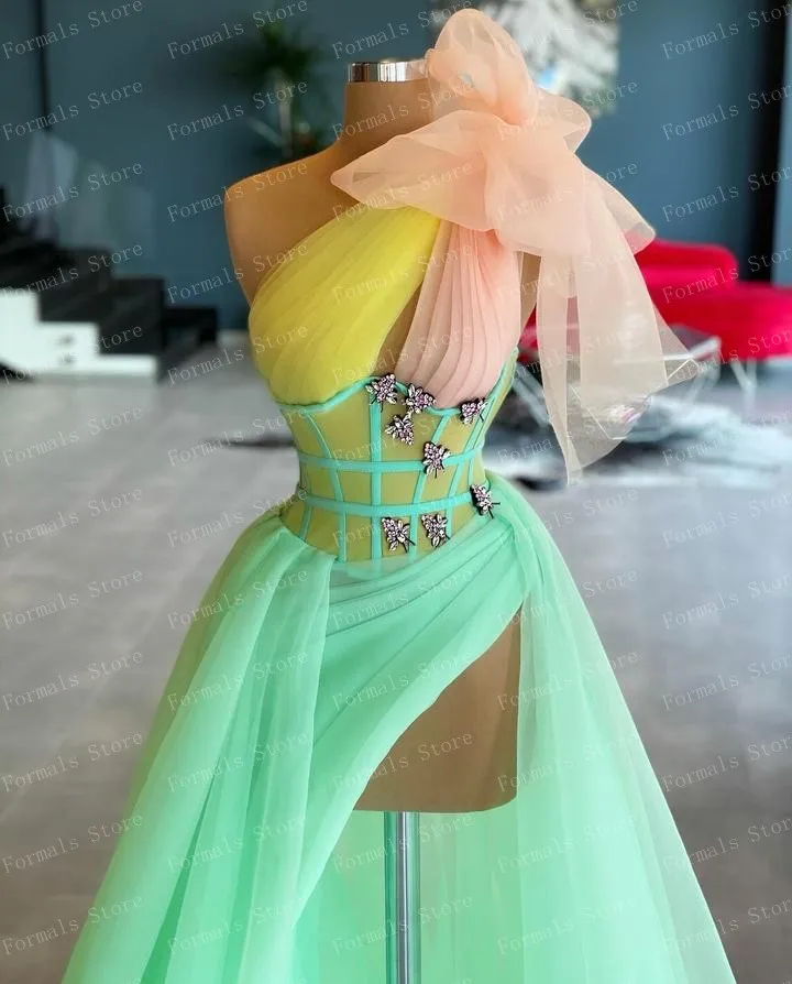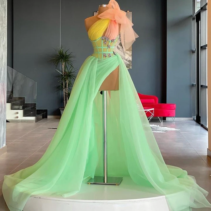 Платье ТРАПЕЦИЕВИДНОЕ на одно плечо, с разрезом и кристаллами