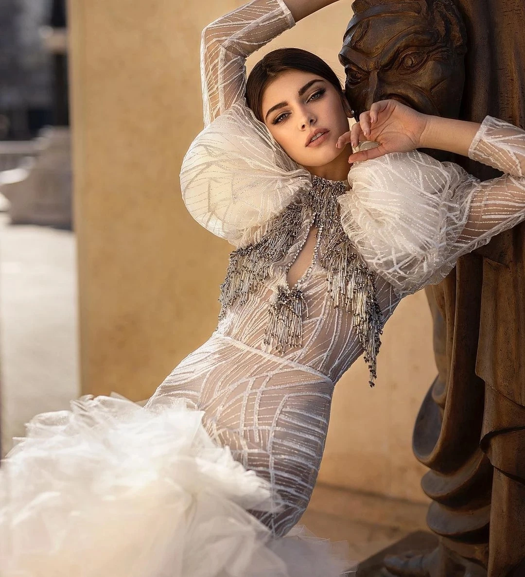 Роскошные Кристаллы Vestido de noiva 2019 размера плюс Русалка Свад...