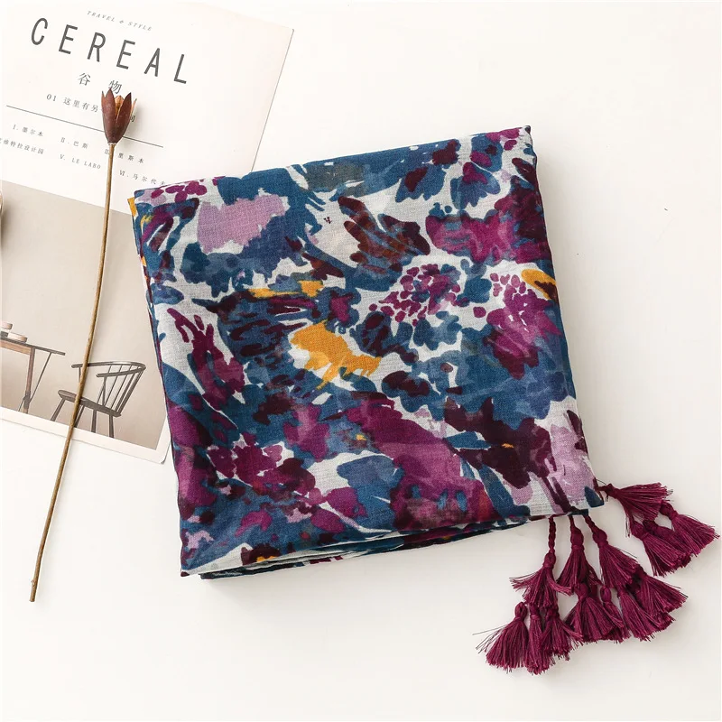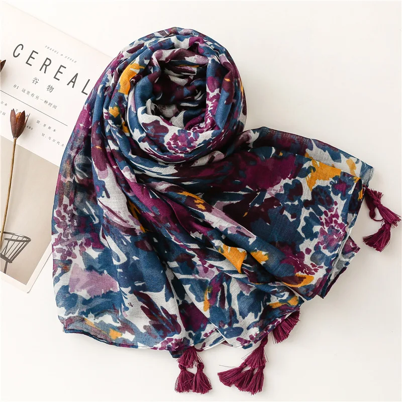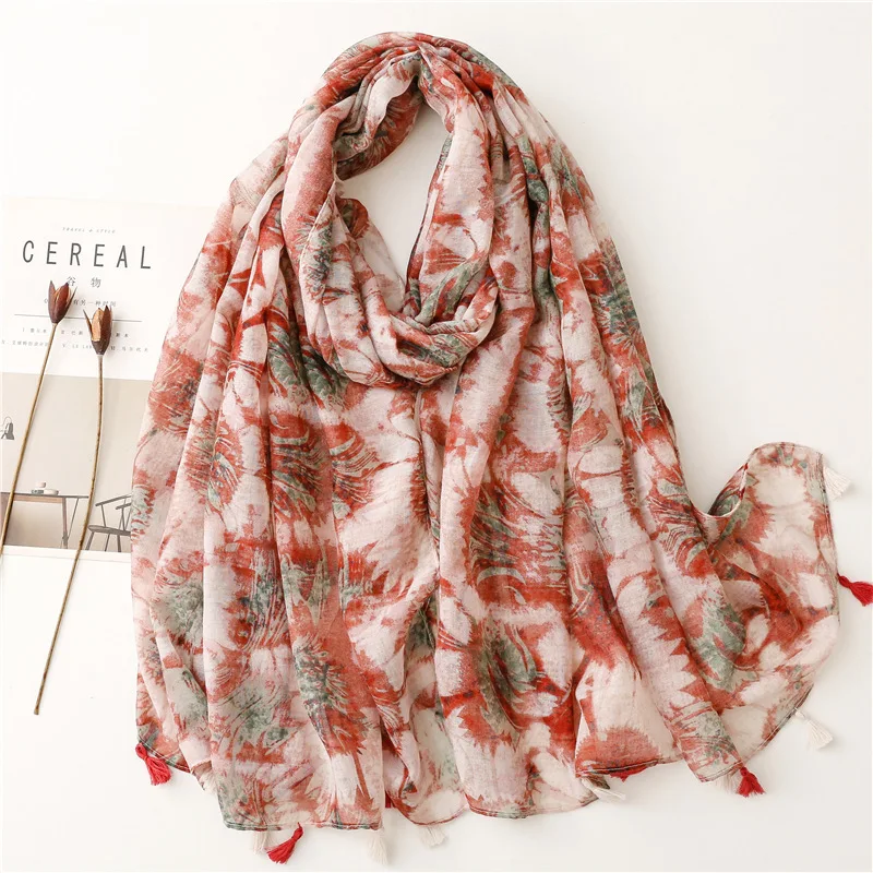 2022 модный Абстрактный Цветочный шарф с рисунком Пейсли и кисточками, Женский Высококачественный тонкий палантин, мусульманский хиджаб 180*90 см