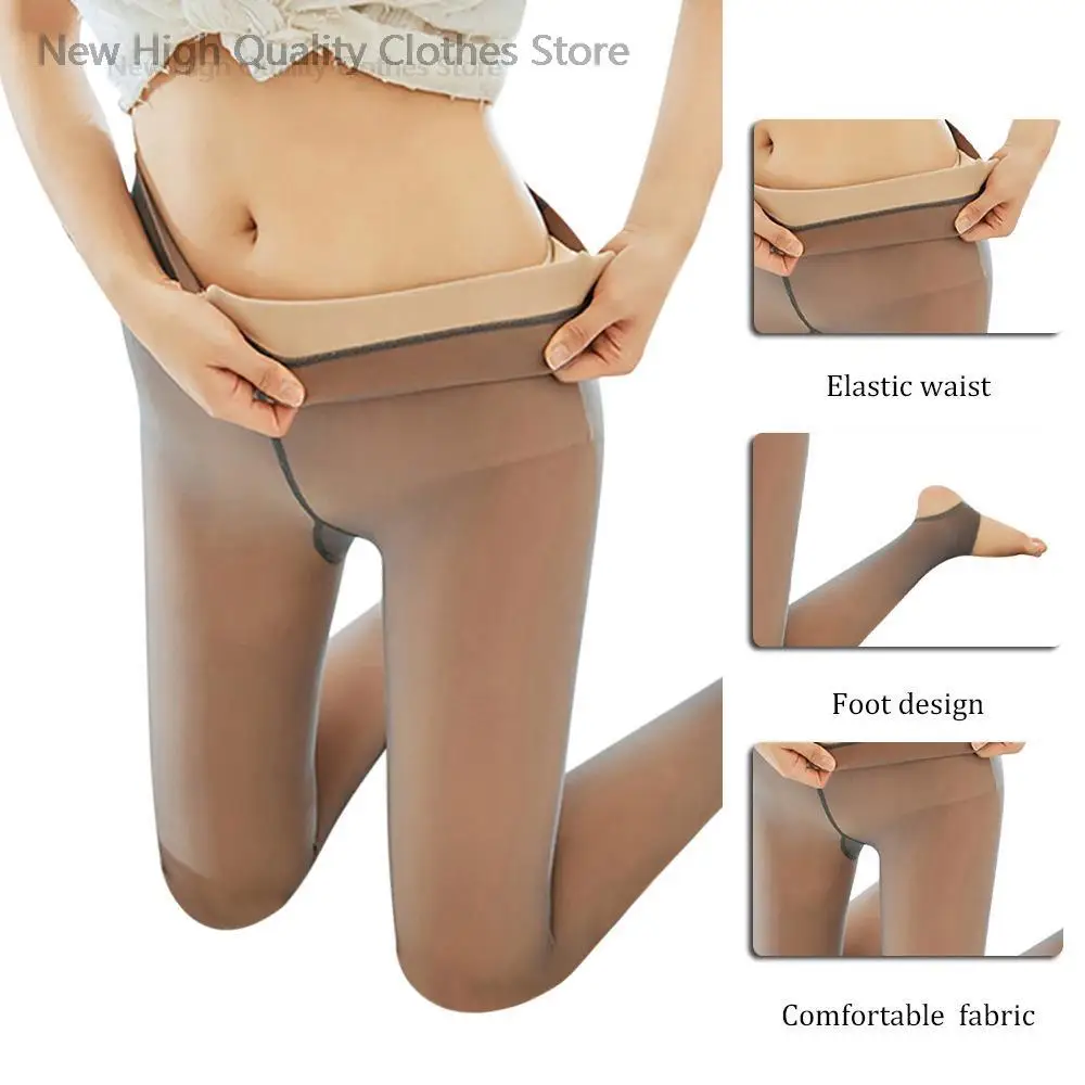 Женские зимние чулки размера плюс, полупрозрачные колготки, эластичные пикантные колготки с высокой талией, чулки из искусственной кожи