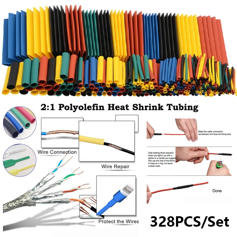 328 шт изоляция Термоусадочная трубка Ассортимент провод кабель втулка комплект термоусадочная трубка DIY разъем ремонт