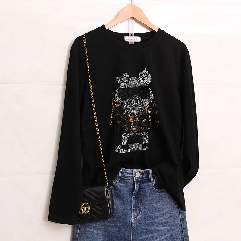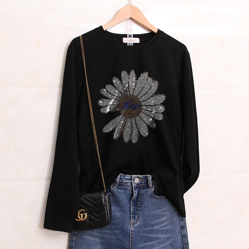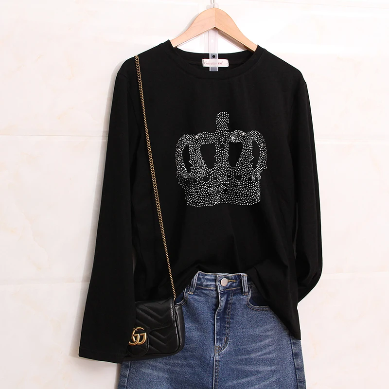 Женская Винтажная футболка с длинным рукавом, свободная повседневная черная футболка с длинным рукавом, модель H009 в стиле Харадзюку, 2022