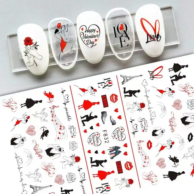 10 шт. Новинка 2022 Наклейка для ногтей на День святого Валентина тик китайские иероглифы для ногтей с тигром буквами любви декоративная аппликация для ногтей