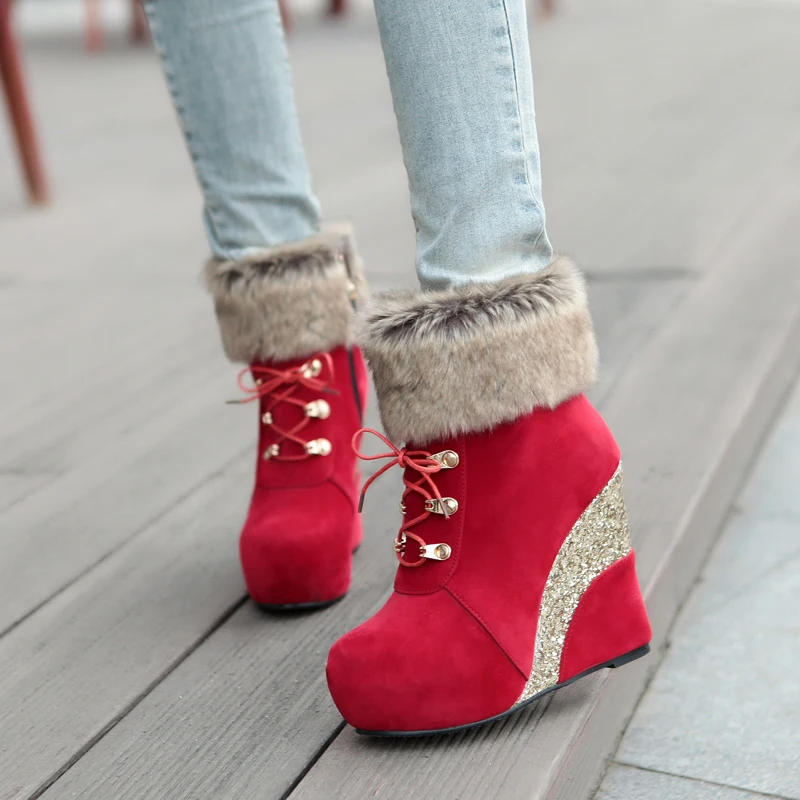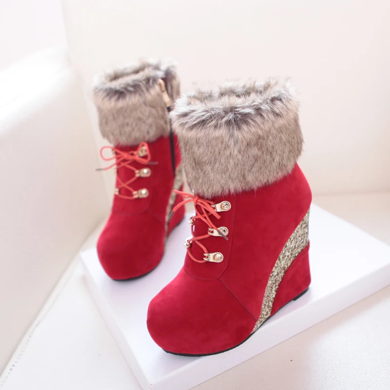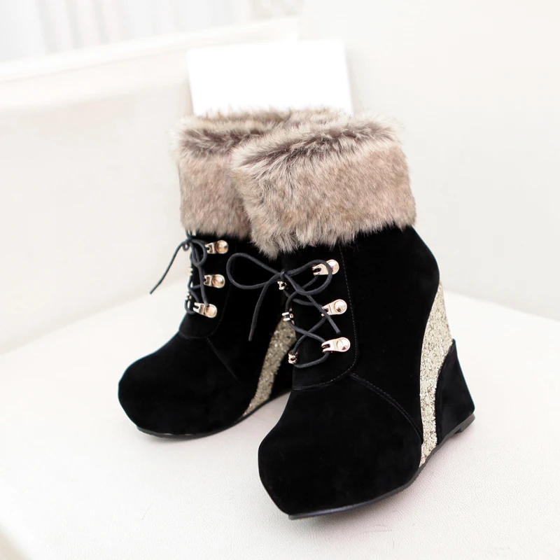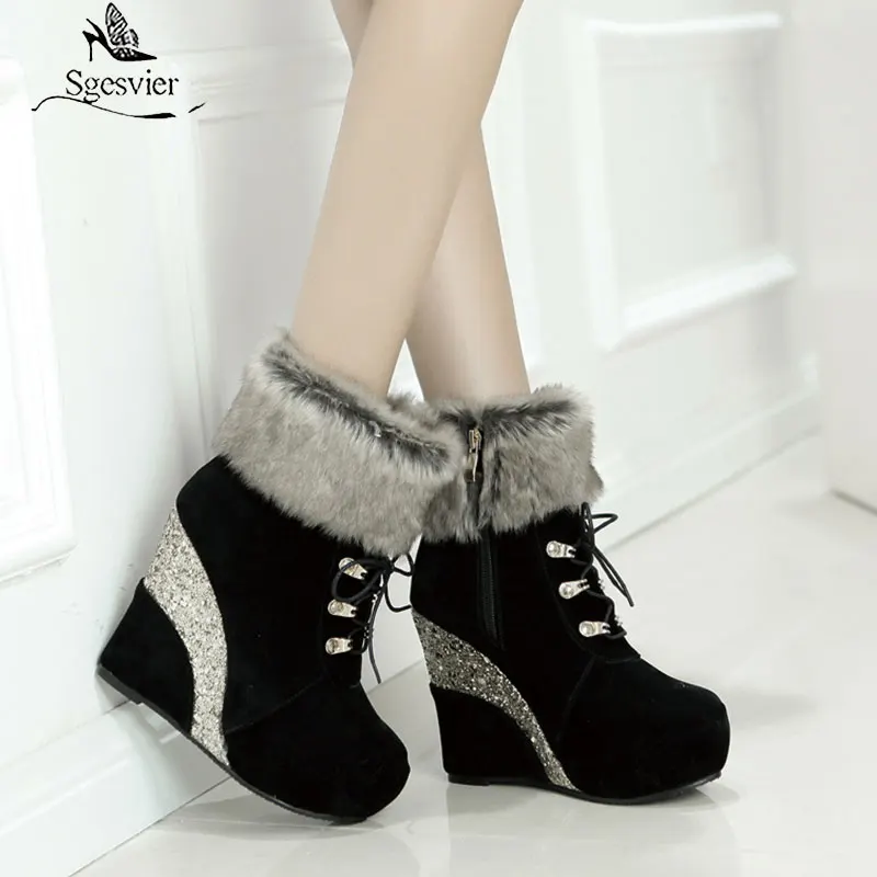 Sgesvier/Большие размеры 43; Модная обувь на танкетке для русской зимы; Ботильоны; Женские теплые ботинки; Женские зимние ботинки на платформе и высоком каблуке
