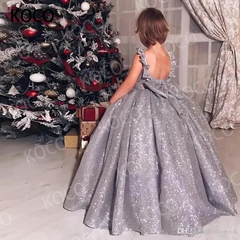 Серебряные блестящие платья JONANY с цветами для девочек, маленькая принцесса для свадьбы, дня рождения, вечеринки, конкурса, бального платья, вечеринки, причастия, святой страницу