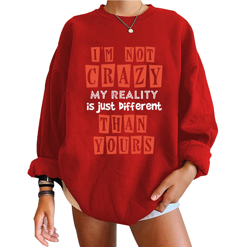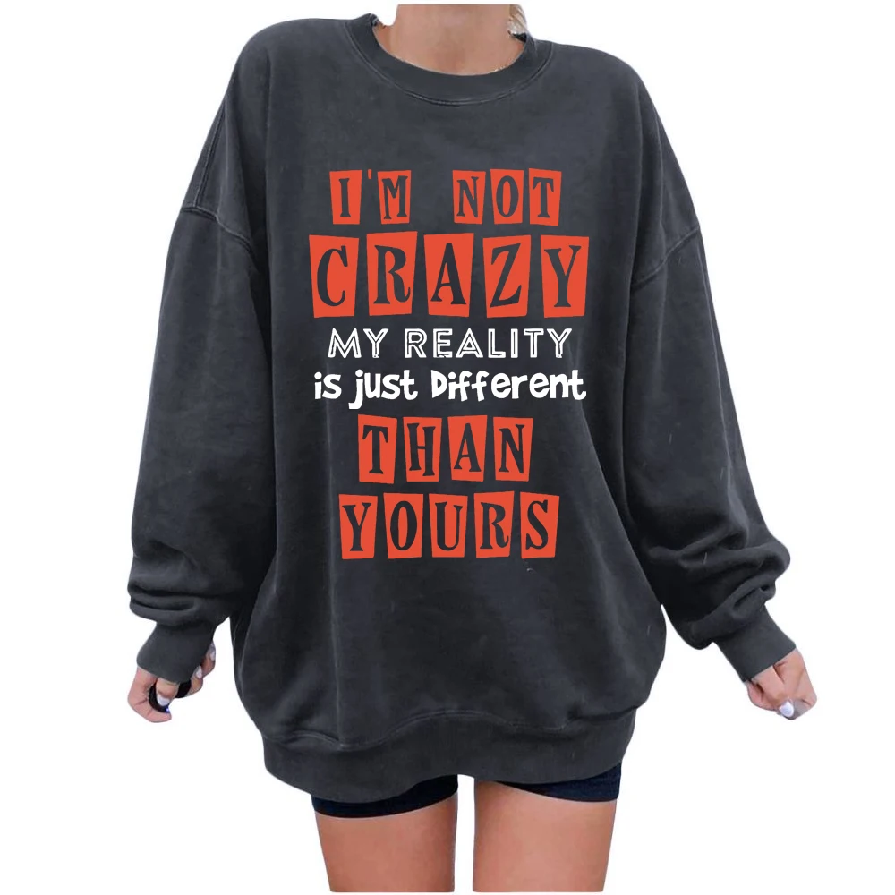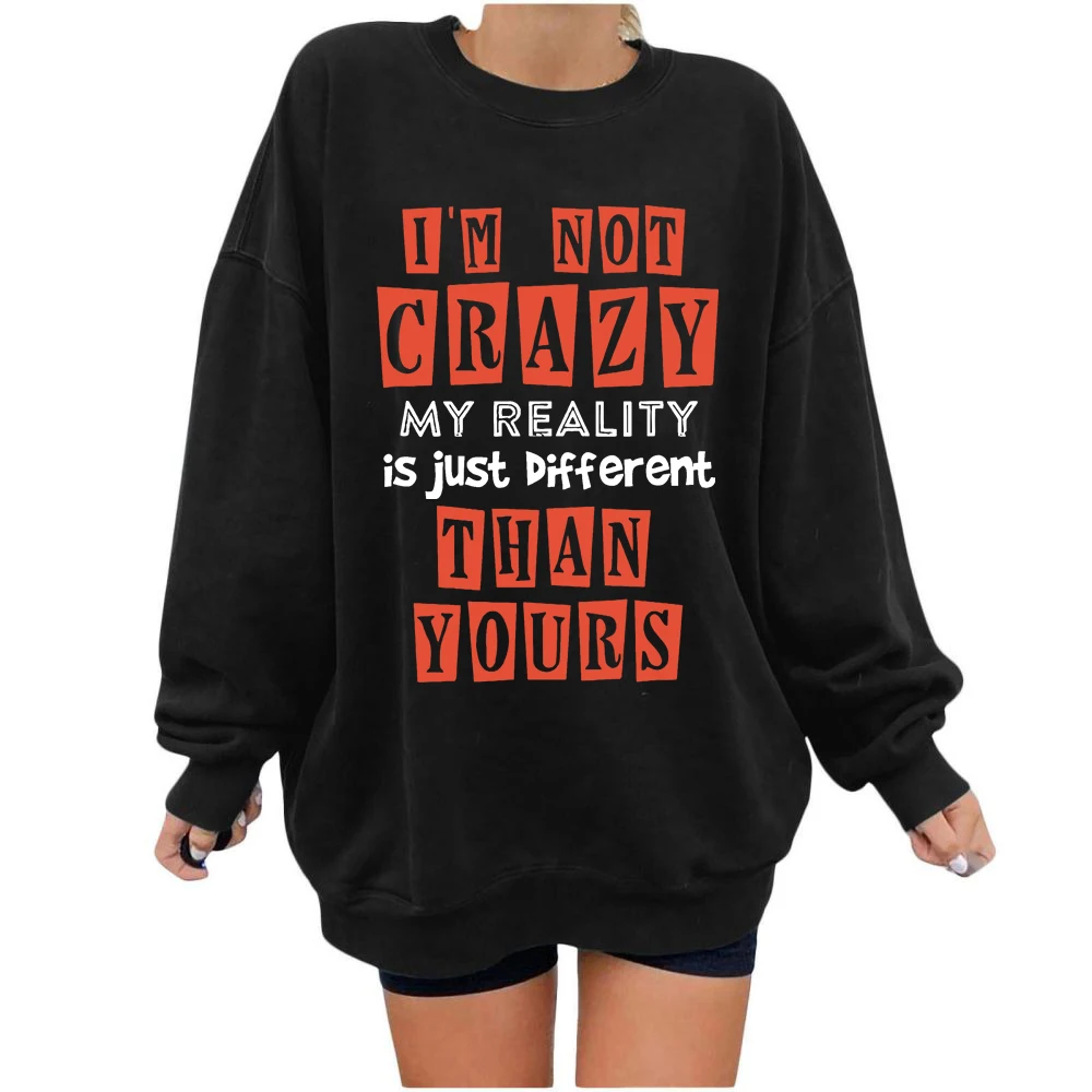 Я не сумасшедший, моя реальность просто отличается от вашей толстовки, Крутая толстовка с длинными рукавами и забавным принтом букв