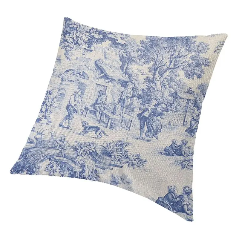 Классический французский фон, темно-синий узор, наволочка для подуш...