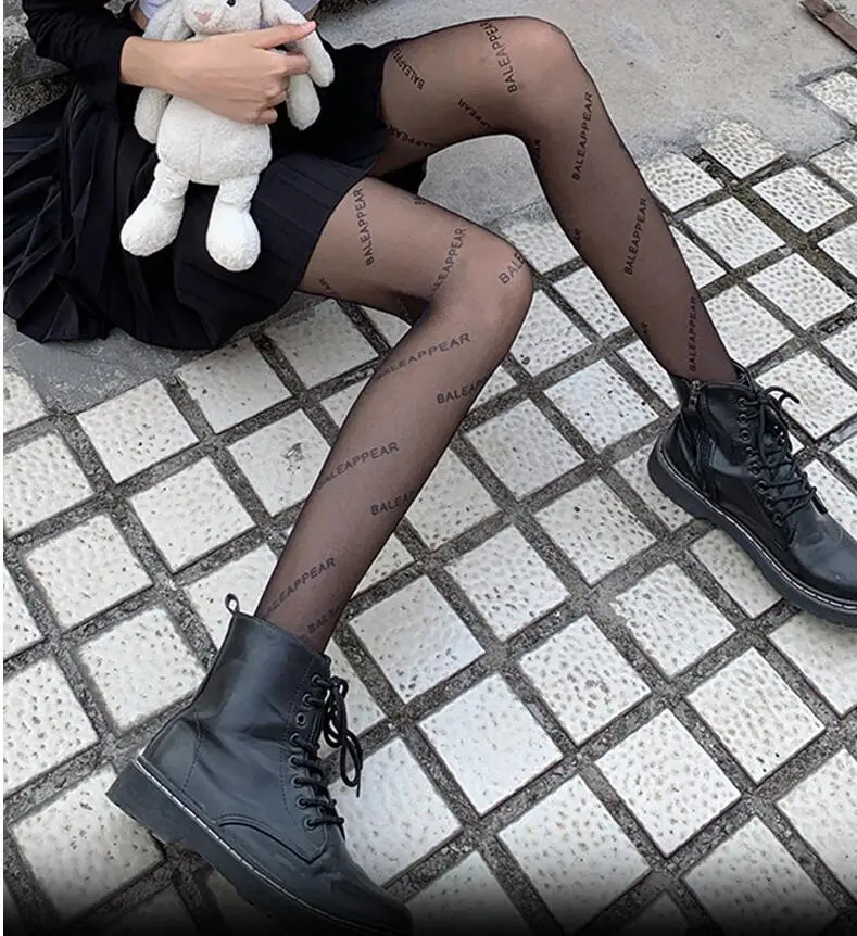 Новинка 2022, Лидер продаж, брендовые чулки, черные колготки с надписью, тонкие стильные Соблазнительные Черные колготки с принтом черепа, женские эротические колготки
