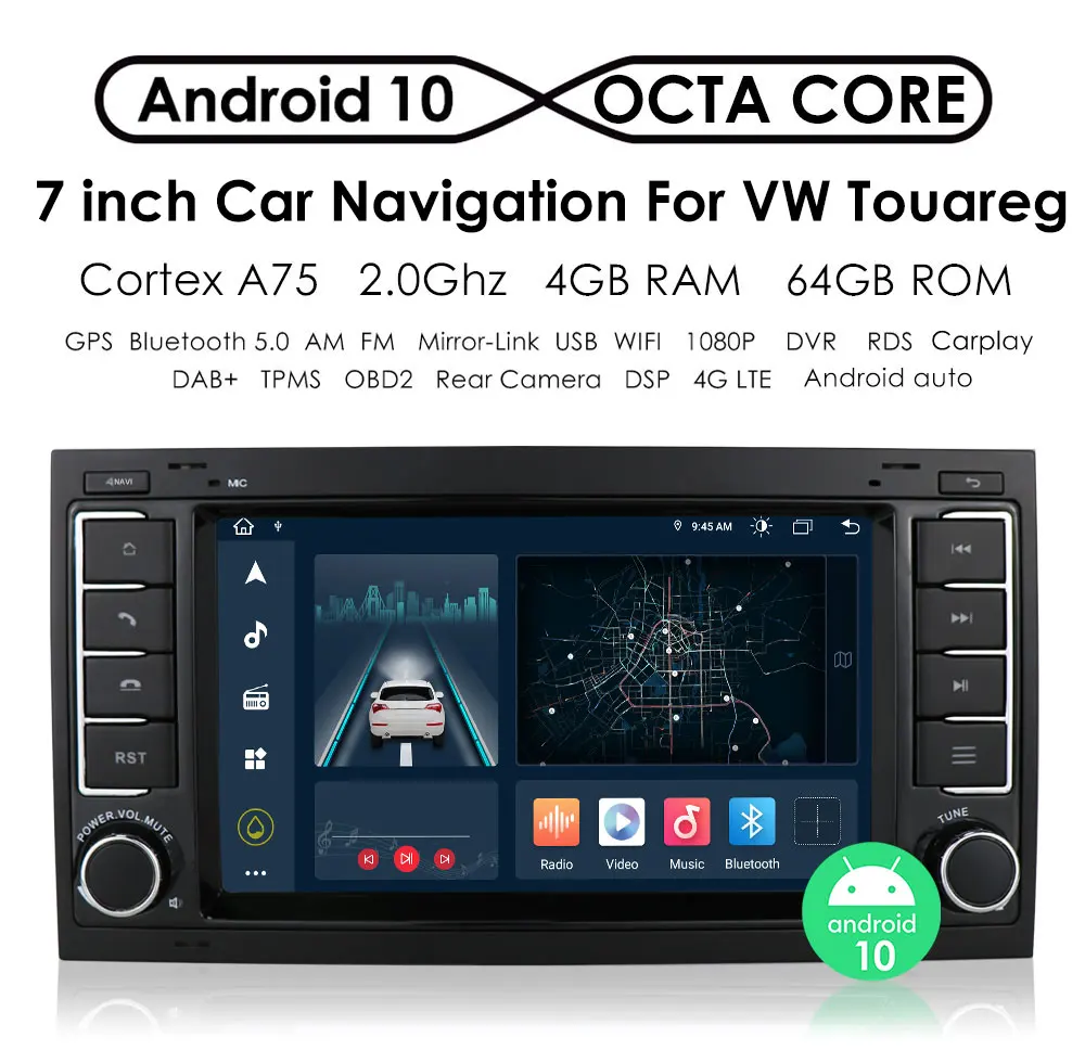 Мультимедийная Автомагнитола DSP 4G 7 ''на Android 10 с GPS для VWVolkswagenTouaregTransporter T5 Multivan Naviagtion
