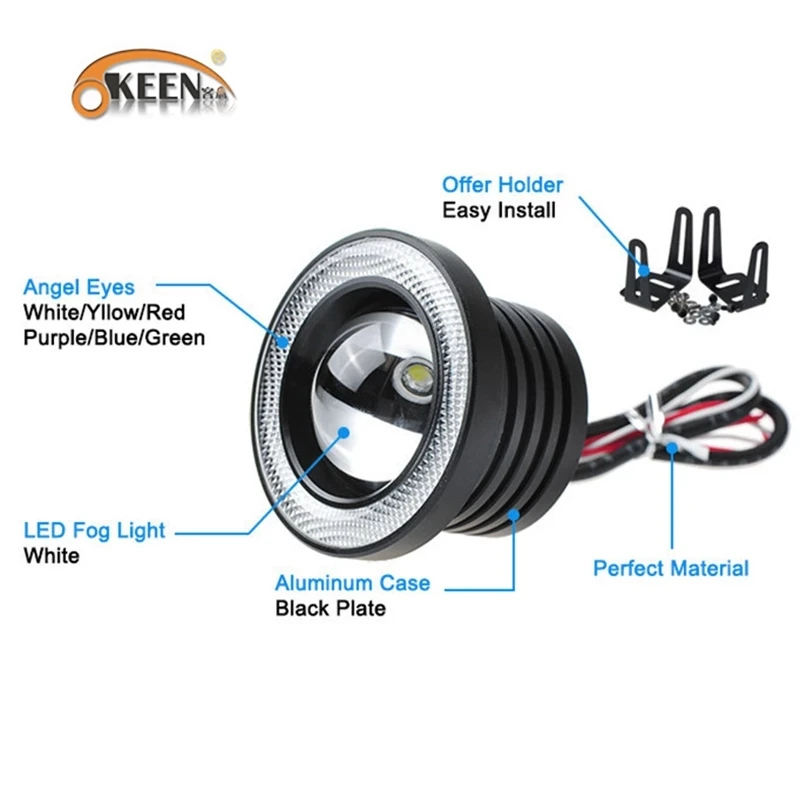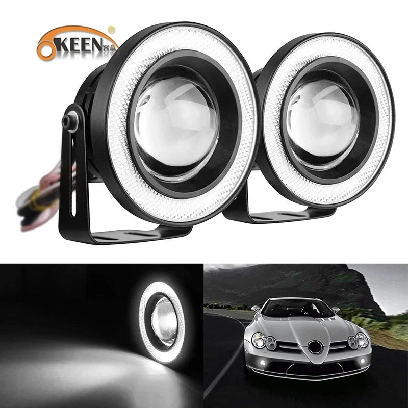 OKEEN 2 шт. универсальная противотуманная фара ангельские глазки COB светодиодный DRL дальнего света 2,5 "3,0" 3,5 "64 мм 76 мм 89 мм авто тюнинг сигнальные лампы 12 В