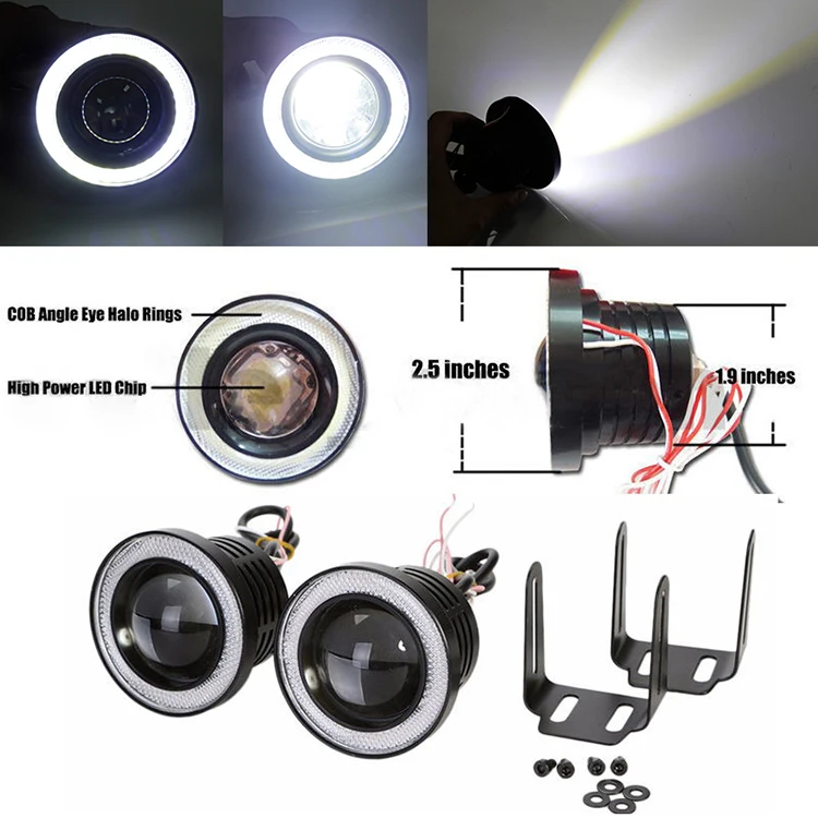 Универсальные Противотуманные фары ангельские глазки, 2 шт., COB Светодиодный ходовые огни, 2,5 дюйма, 3,0 дюйма, 3,5 дюйма, 64 мм, 76 мм, 89 мм, автомобильные сигнальные лампы для настройки, 12 В