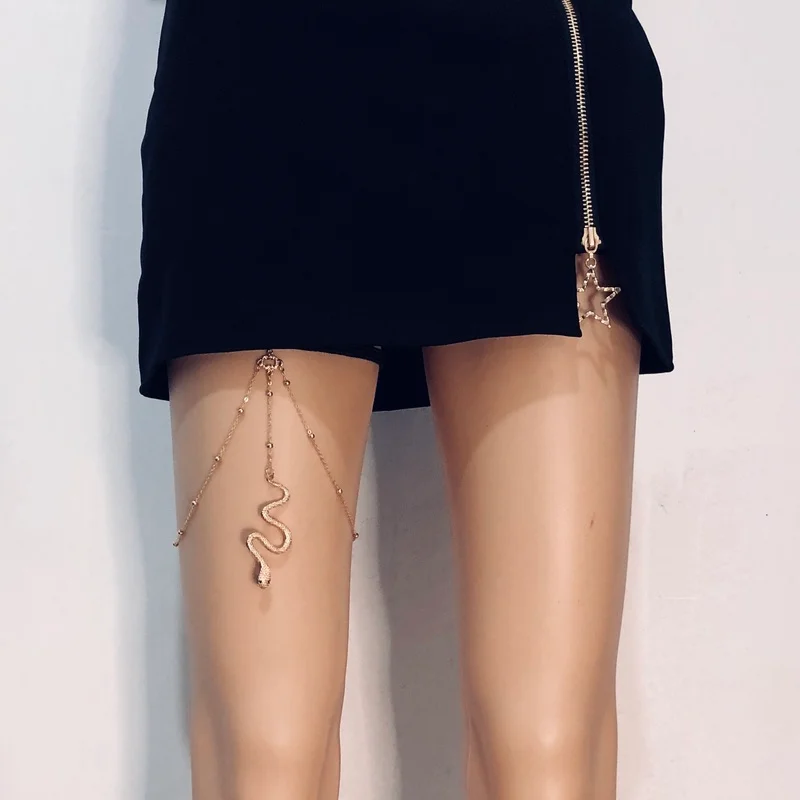 Многослойная цепочка для ног в виде змеи, индивидуальная цепочка для бедра, женское пляжное ювелирное изделие для тела, эластичная цепочка для ног, модные ювелирные изделия для вечеринок