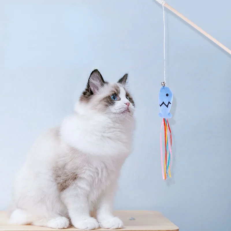 Игрушки для кошек устойчивая к царапинам и укусам плюшевая игрушка с мятой лента рыба деревянный шест забавная кошка-палочка кошки игрушки для кошек