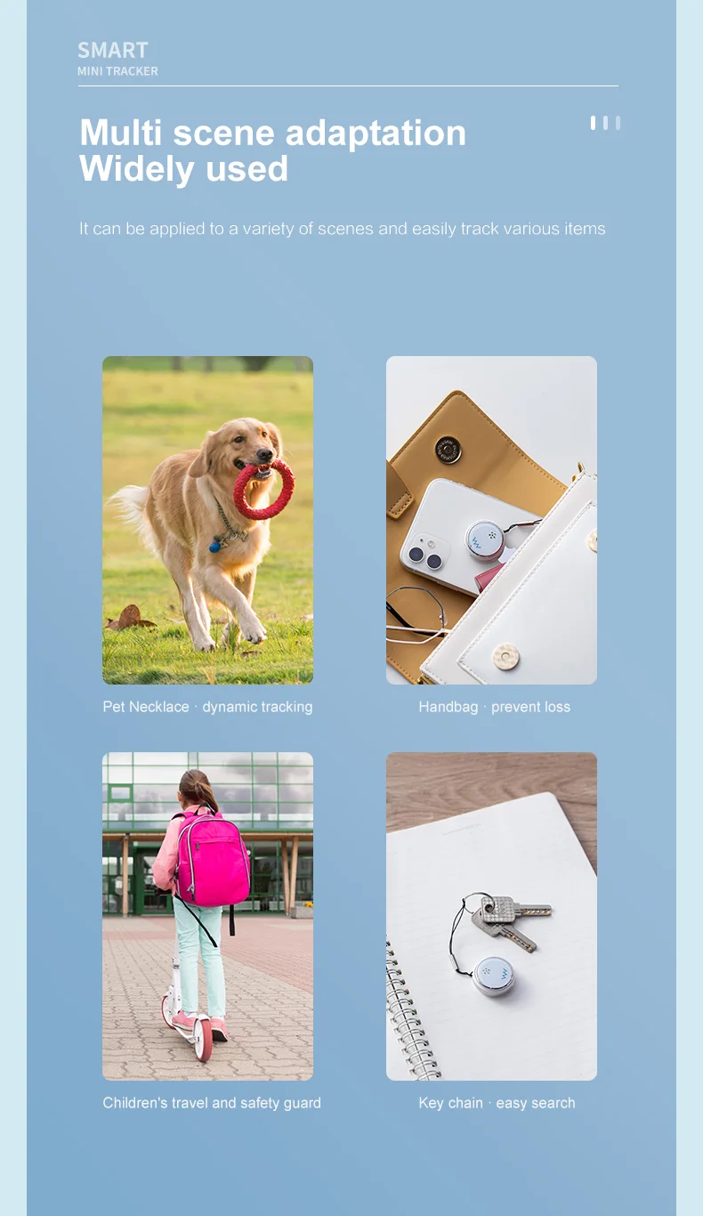 Устройство против потери может эффективно использовать расстояние до 10 метров в открытом диапазоне, даже вы можете использовать его на вашем ребенке или домашнем животном, вам больше не придется беспокоиться о потере их.