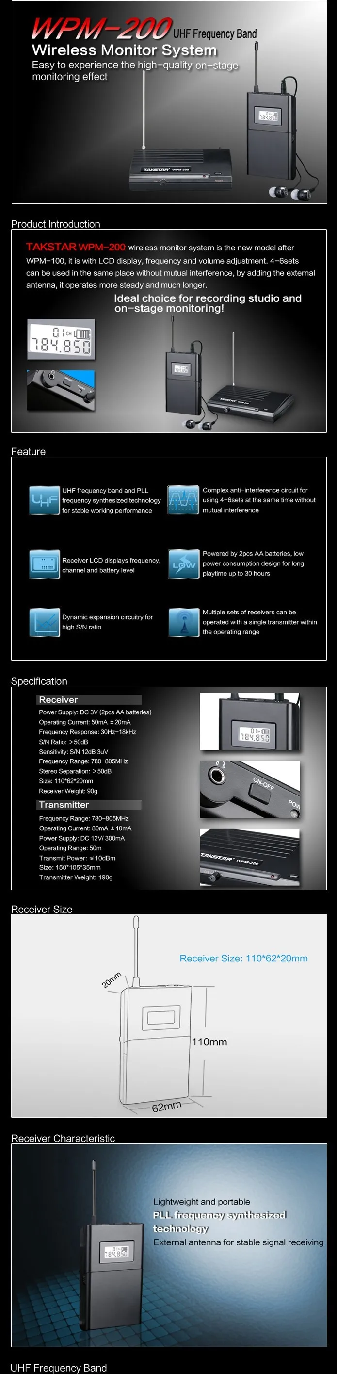 TAKSTAR WPM-200 wpm200 Беспроводная система монитора в ухо, стерео...