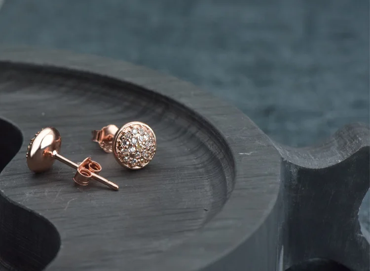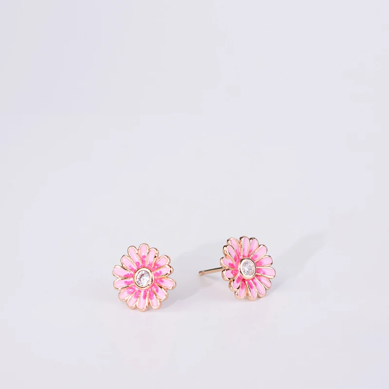 Женские серьги-гвоздики из серебра 925 пробы, с розовыми маргаритками