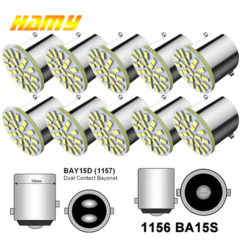 10 шт. Автомобильный светодиодный светильник P215 Вт PY21W 1156 Ba15s 1157 BAY15D указатель поворота 12 В 22 SMD 7000K белый Автомобильный задний тормоз стояночный фонарь