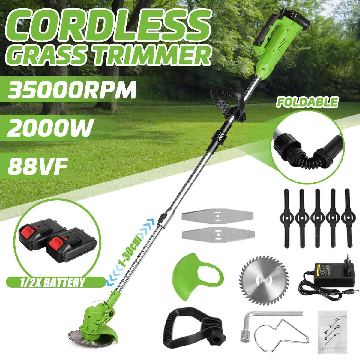 Беспроводная электрическая газонокосилка, 35000 обмин, 2000 Вт, 24 В, литий-ионный триммер для травы, обрезка сада, электроинструменты с 2 аккумуляторами 6000 мАч