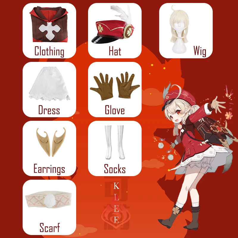 Костюм для косплея Genshin Impact Klee, Униформа, парик для косплея, Аниме Костюмы в китайском стиле на Хэллоуин для женщин, игра Кели